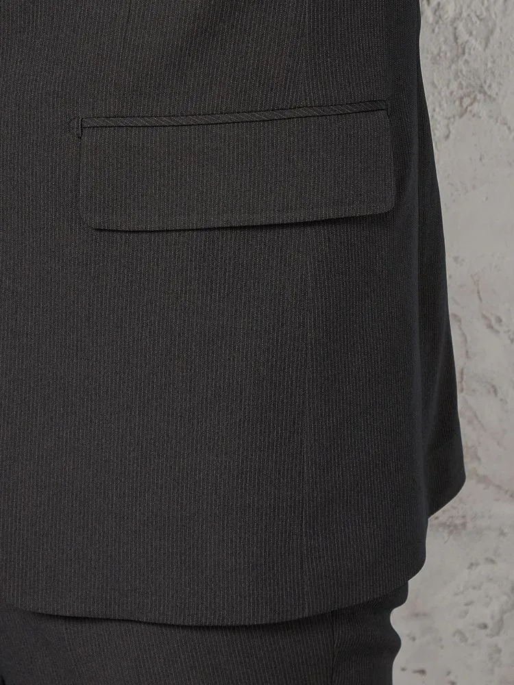 切り込みが1本のセンターベントデザインです。細身でスッキリとしたシルエットが特徴で、快適な着心地を提供します