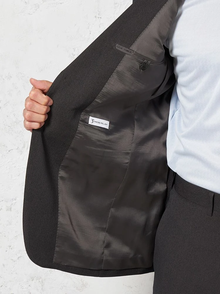 【即納】スーツ 2つボタン【WEB限定】4WAYストレッチ ストライプ チャコールグレー 通年