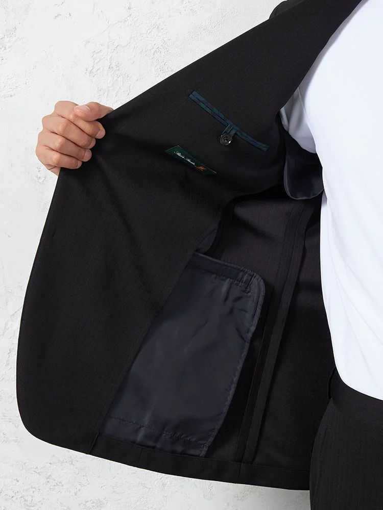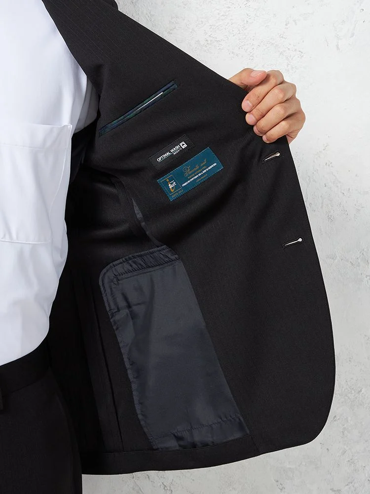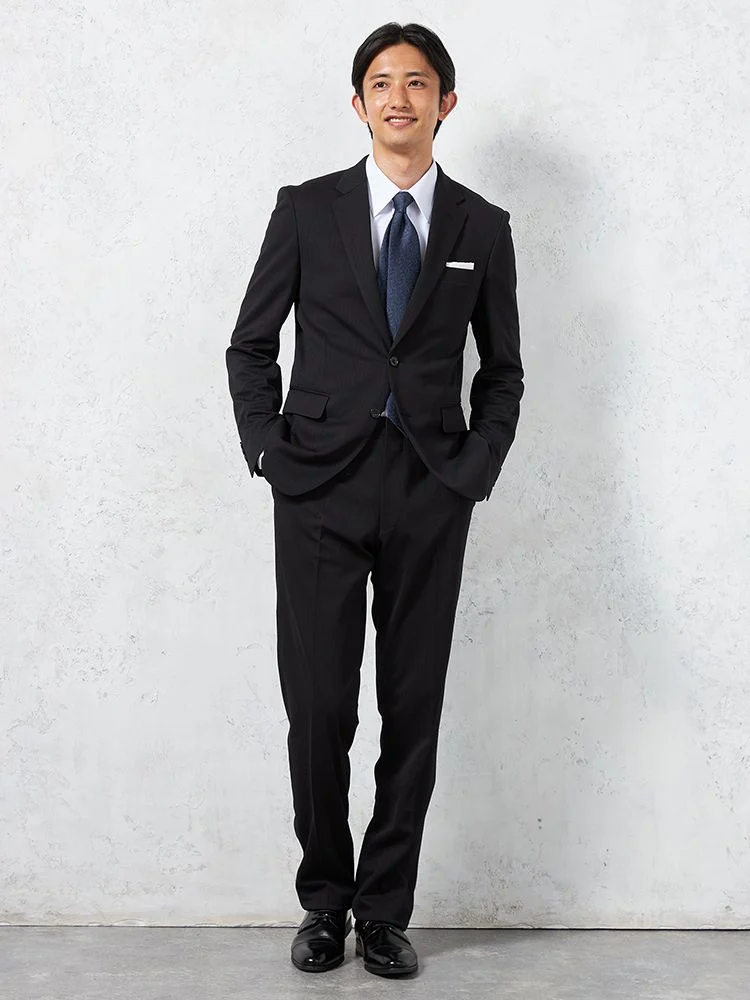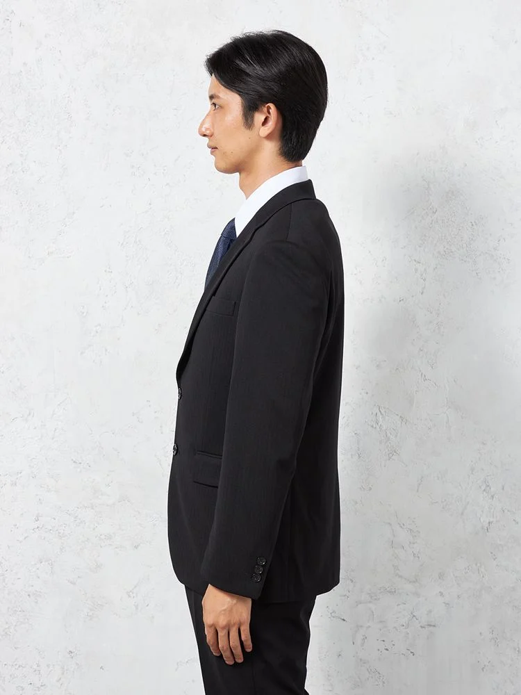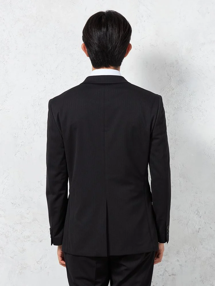 【即納】スリーピーススーツ2つボタン【WEB限定】上下ウォッシャブルブラックシャドウストライプ3シーズン対応