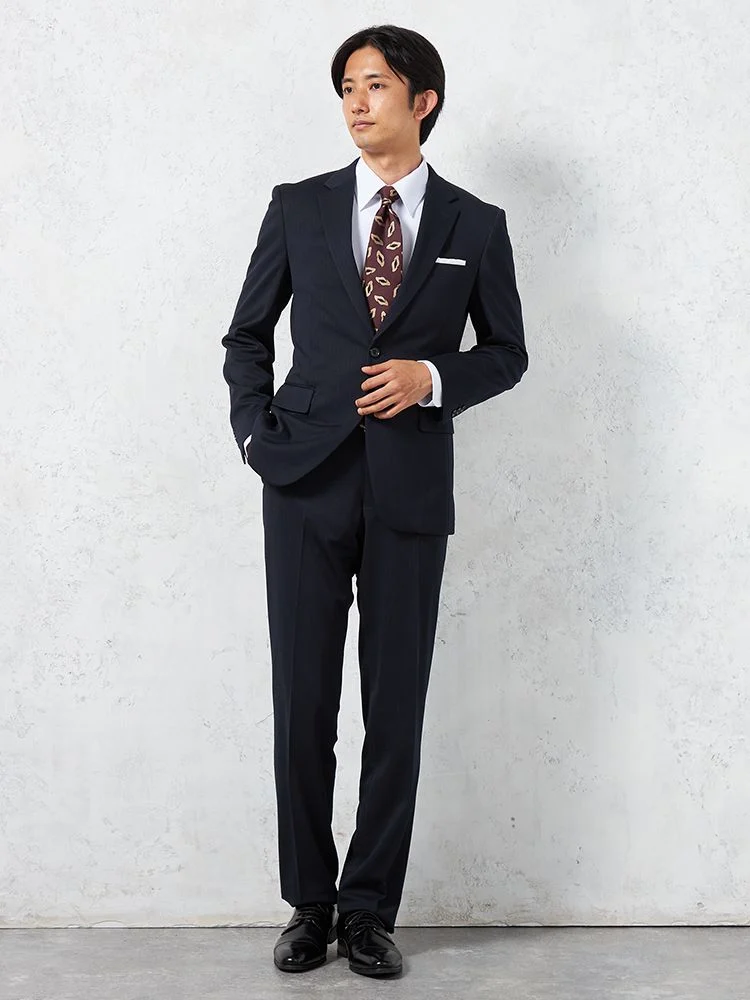【即納】【WEB限定】スーツ2つボタンネイビーシャドウストライプ上下ウォッシャブル3シーズン対応