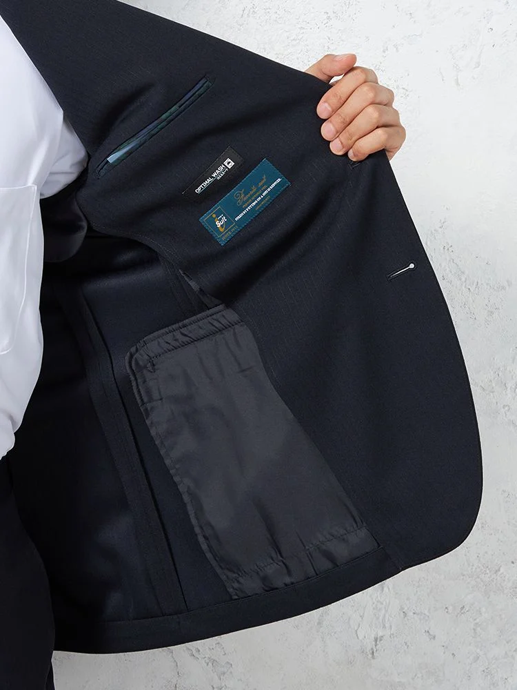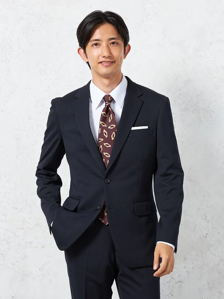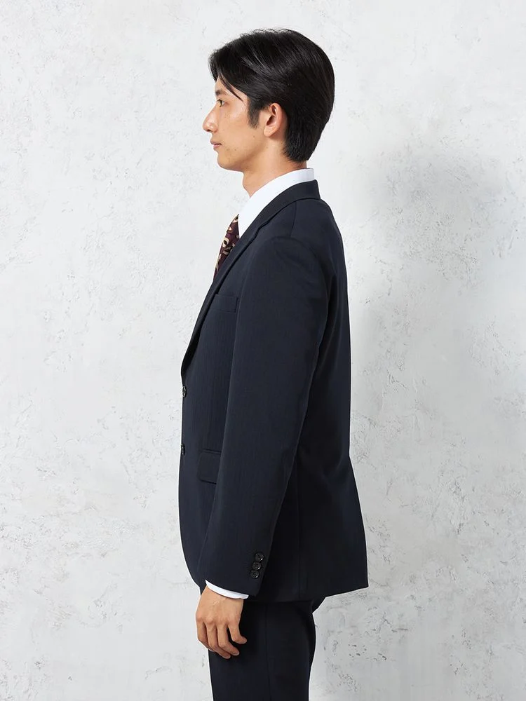 【即納】スーツ2つボタン【WEB限定】上下ウォッシャブルネイビーストライプ