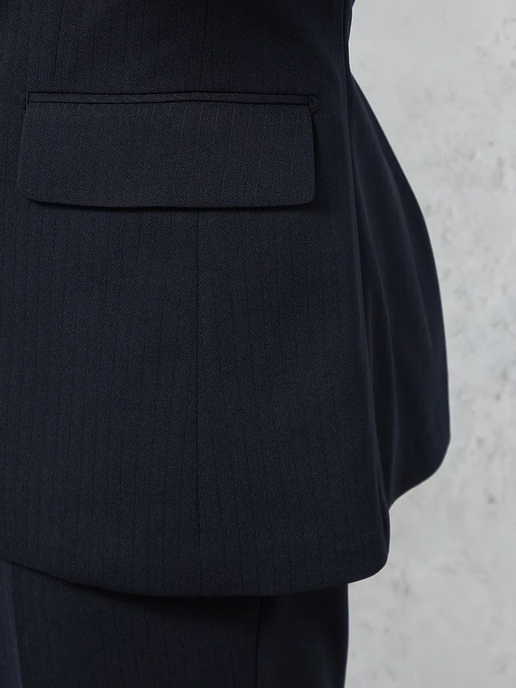 切り込みが1本のセンターベントデザインです。細身でスッキリとしたシルエットが特徴で、快適な着心地を提供します