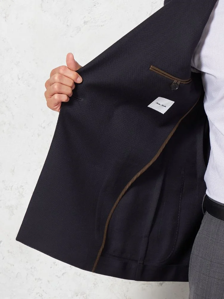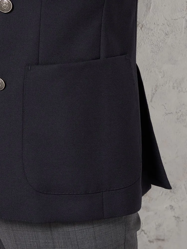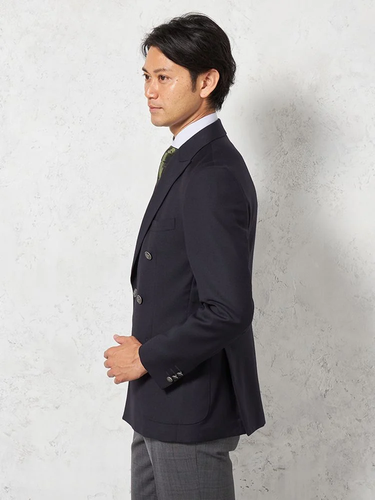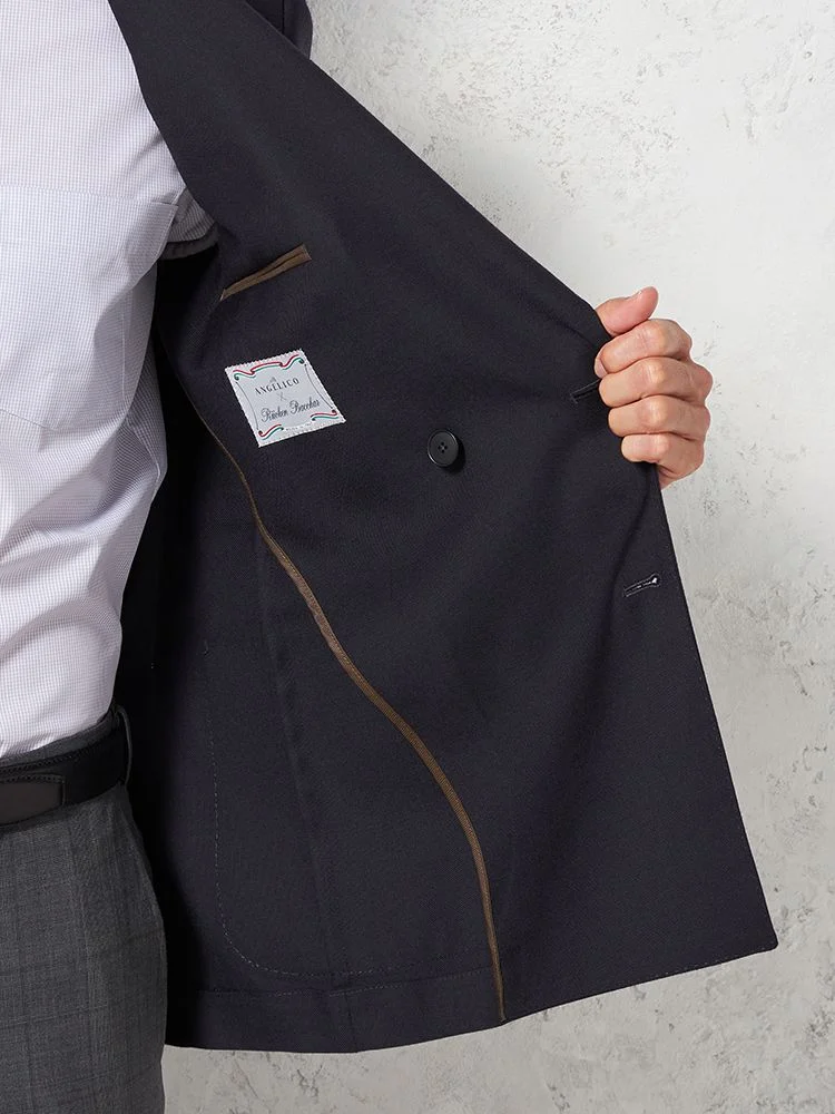 イタリアの老舗生地メーカー「アンジェリコ」社製生地による、本格紺ブレザー。