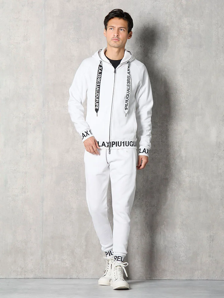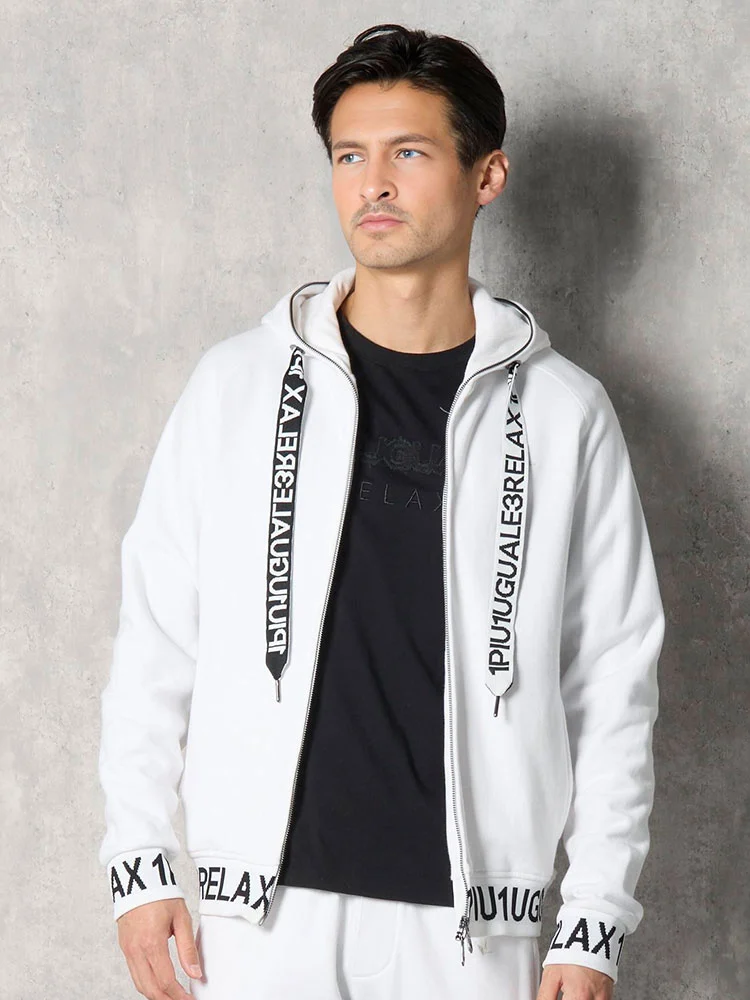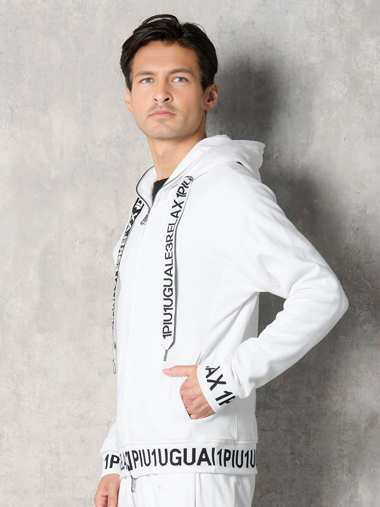【1PIU1UGUALE3 RELAX】HEM LOGO フーディ 通年(ウノ ピゥ ウノ ウグァーレ トレ)(ホワイト)