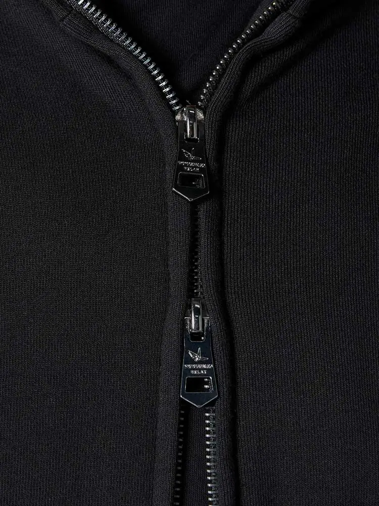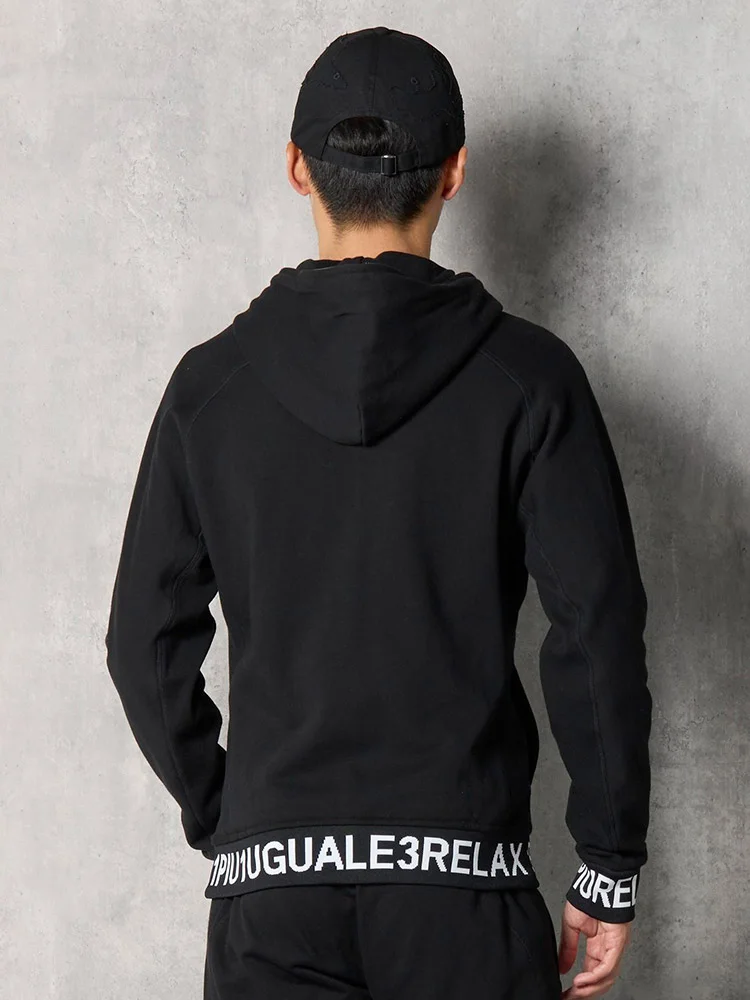 ブランド定番のヘビー裏毛素材をベースに、裾にロゴデザインを加えた遊び心あるフーディ。