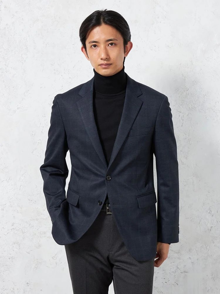 【抗ピリング】ジャケット2つボタン【i-Jacket-アイジャケット-】ストレッチウォッシャブルチェックネイビー秋冬
