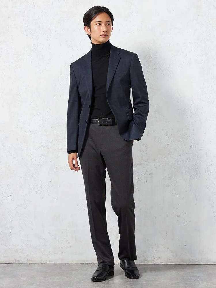 切り込みが1本のセンターベントデザインです。細身でスッキリとしたシルエットが特徴で、快適な着心地を提供します