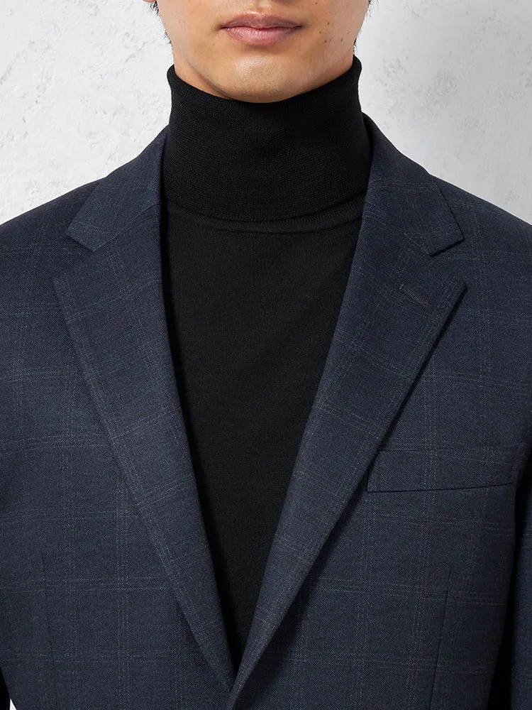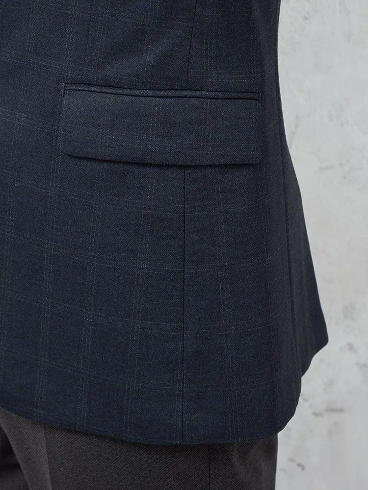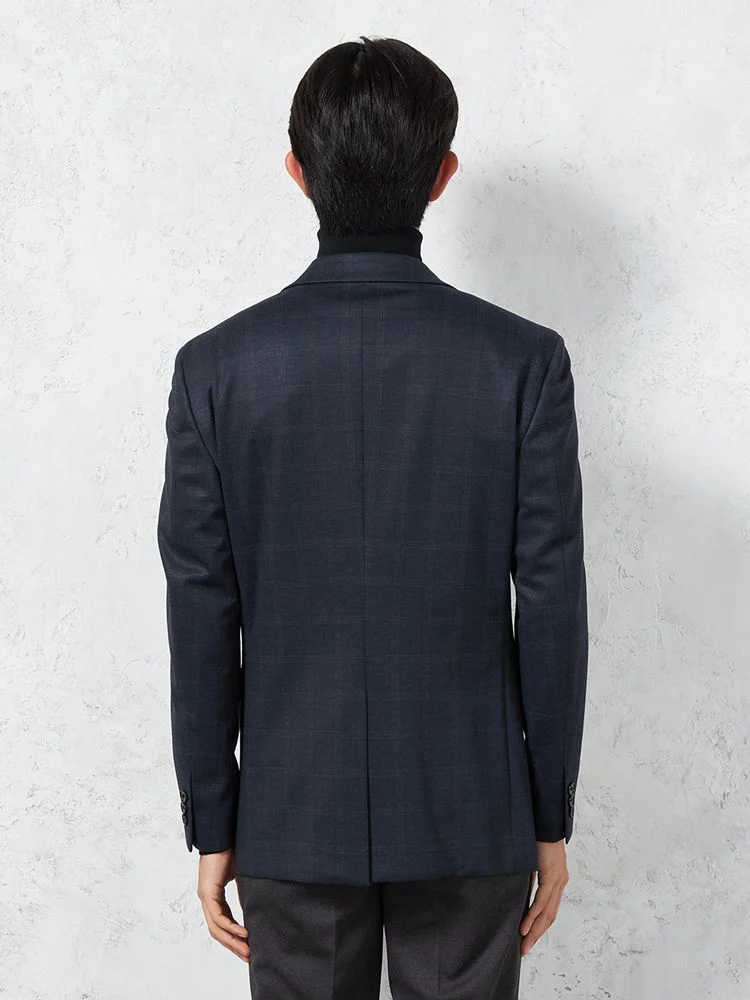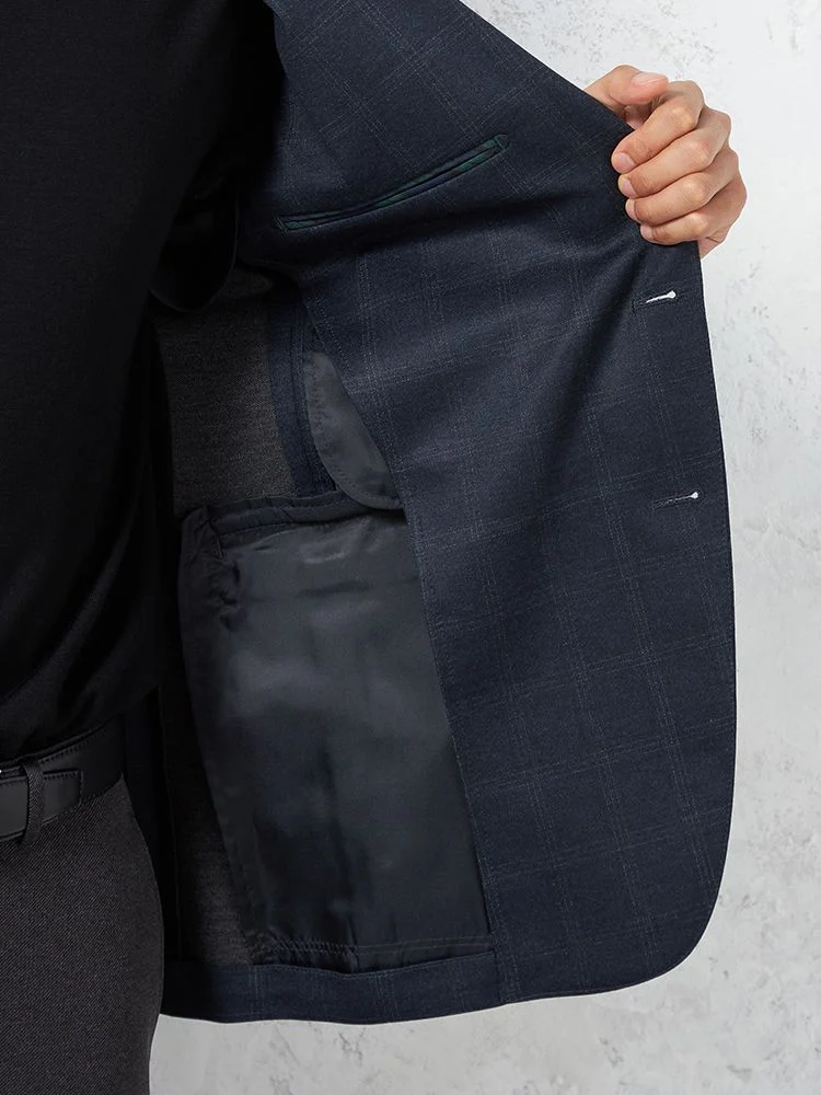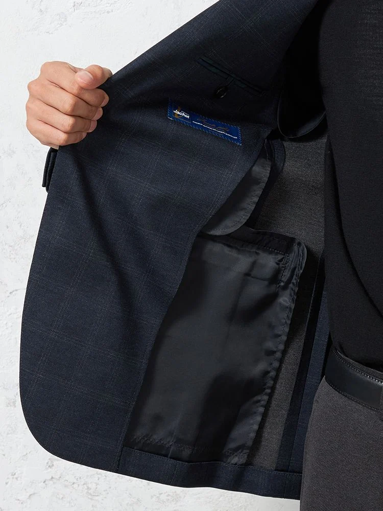 【抗ピリング】ジャケット 2つボタン【i-Jacket-アイジャケット-】ストレッチ ウォッシャブル チェック ネイビー 秋冬