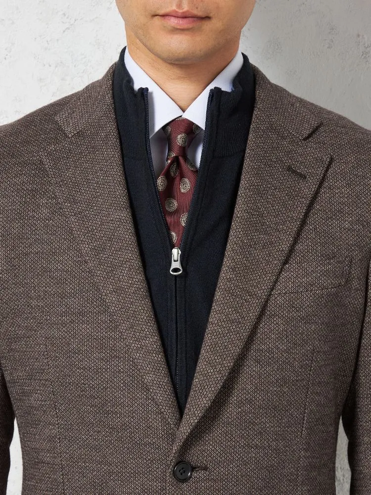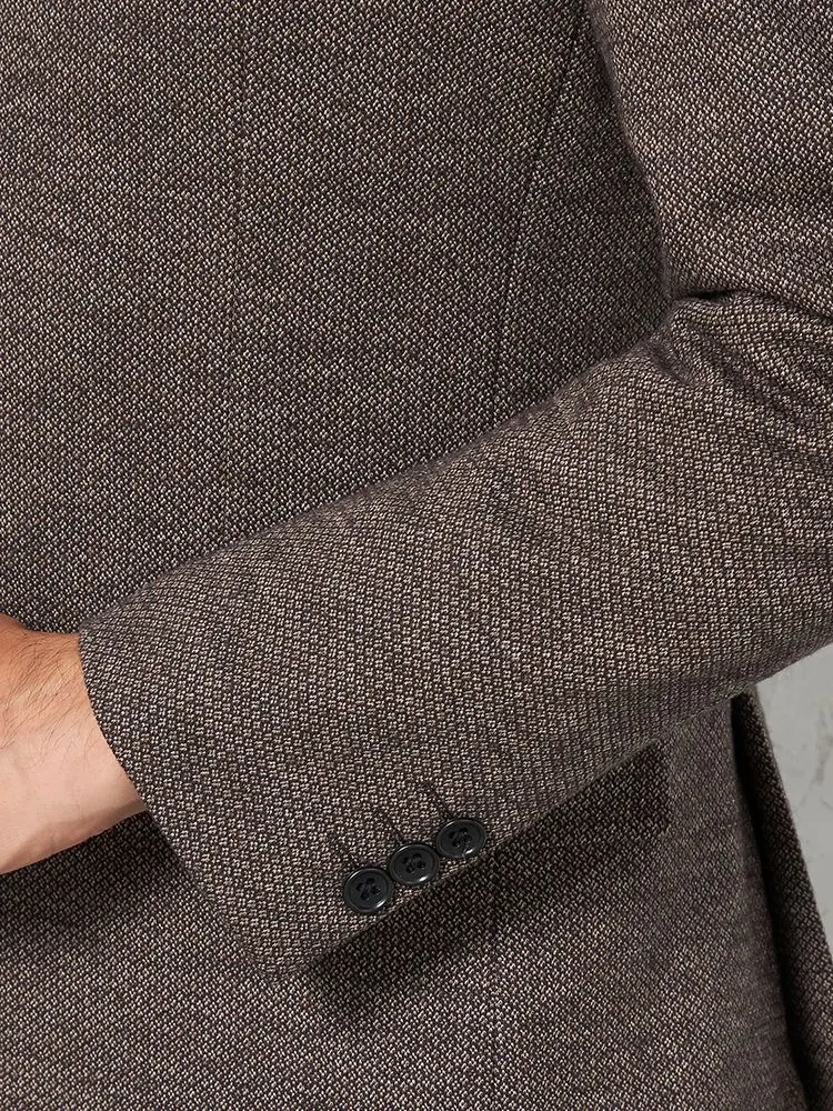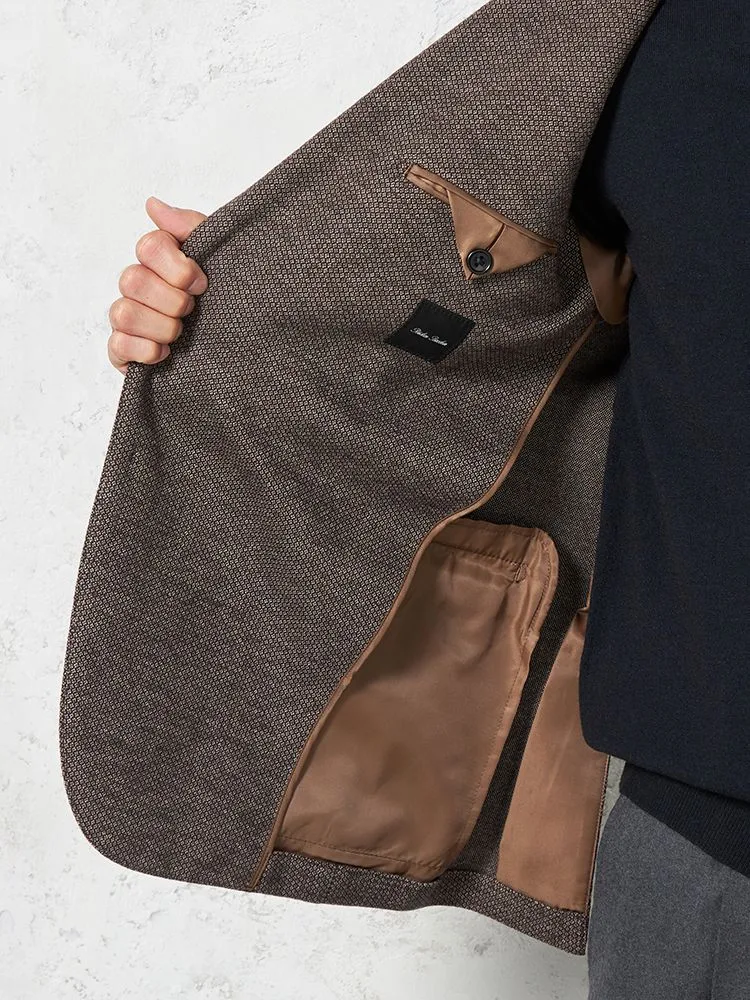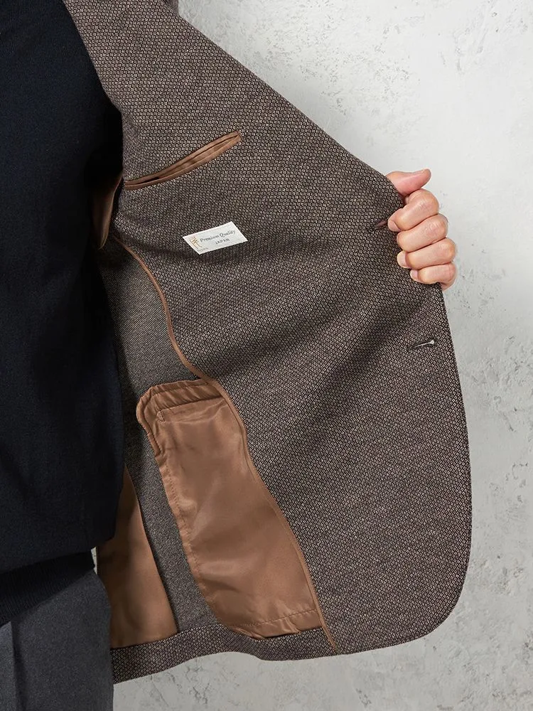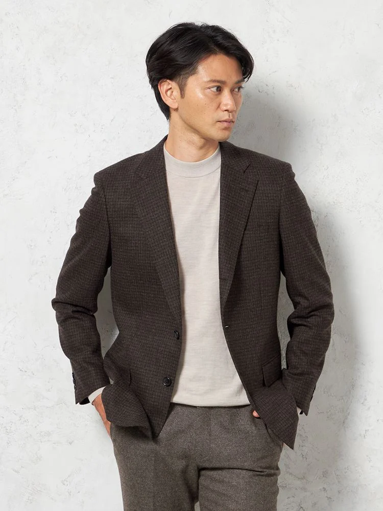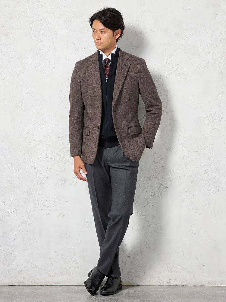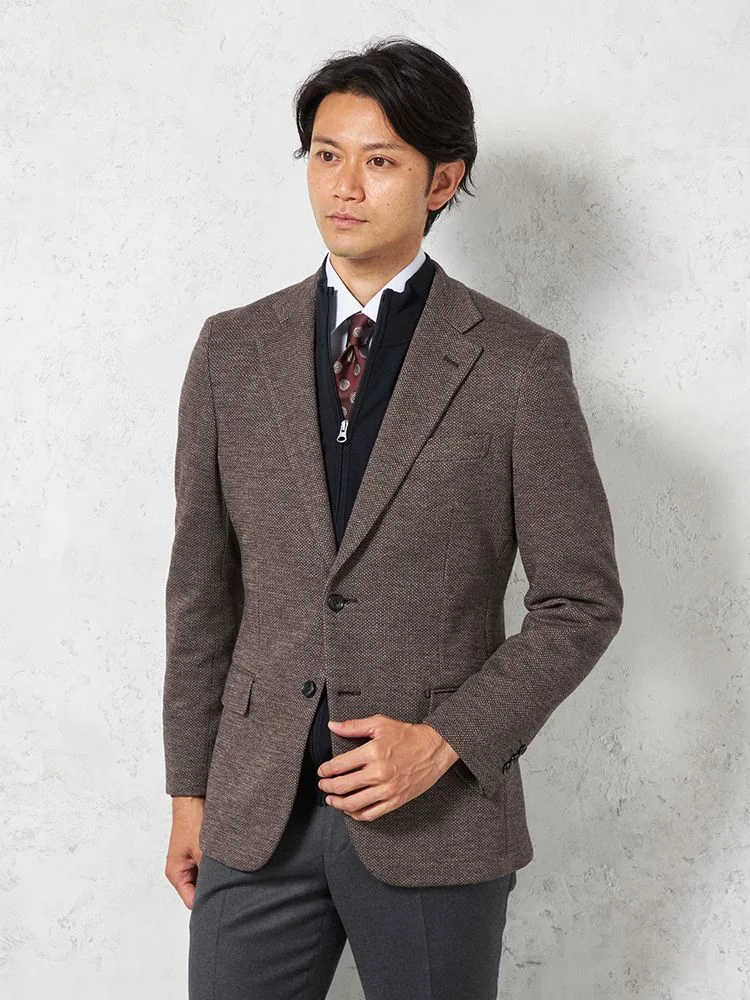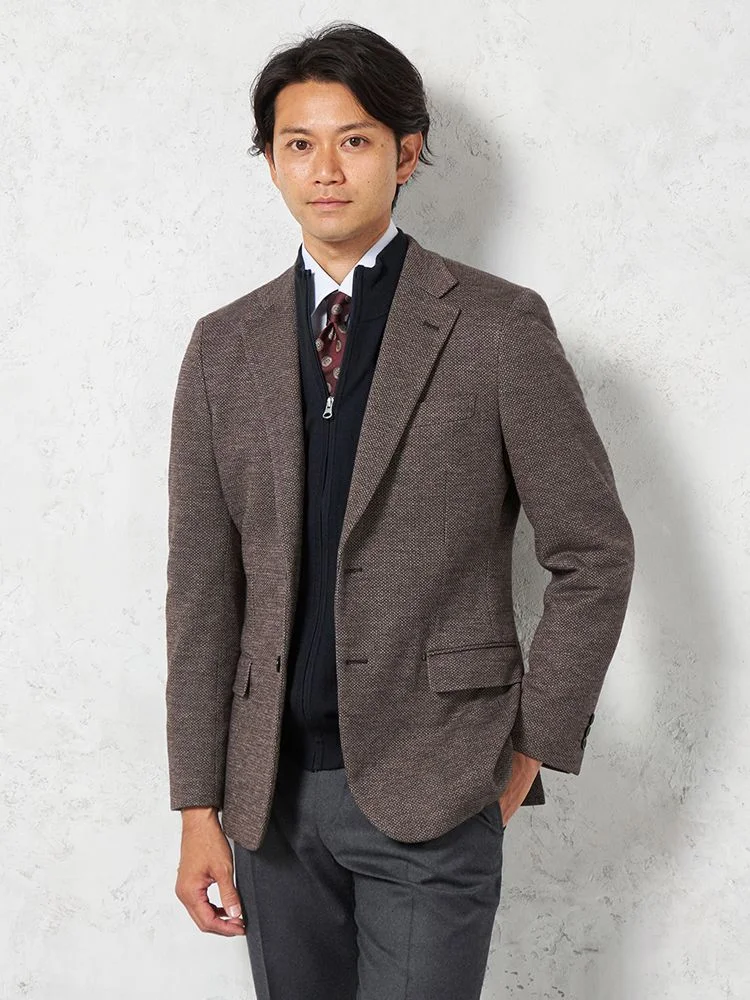 • 【尾州ニット生地】ジャケット 2つボタン 国産素材 ストレッチ 小柄 ブラウン リッケンバッカー 秋冬 1376714752