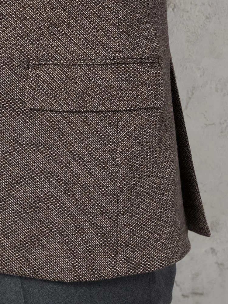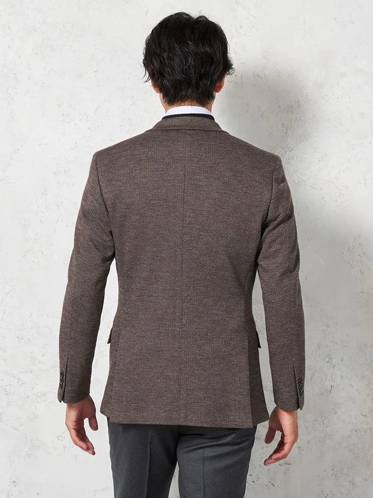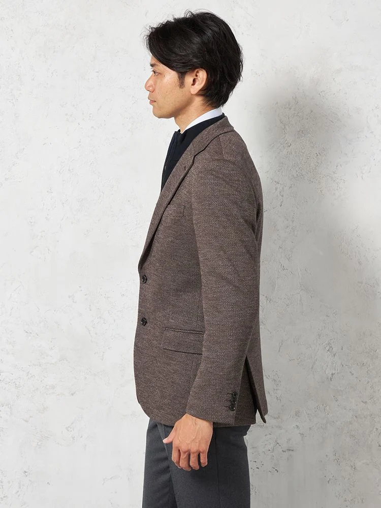 【尾州ニット生地】ジャケット 2つボタン 国産素材 ストレッチ 小柄 ブラウン リッケンバッカー 秋冬
