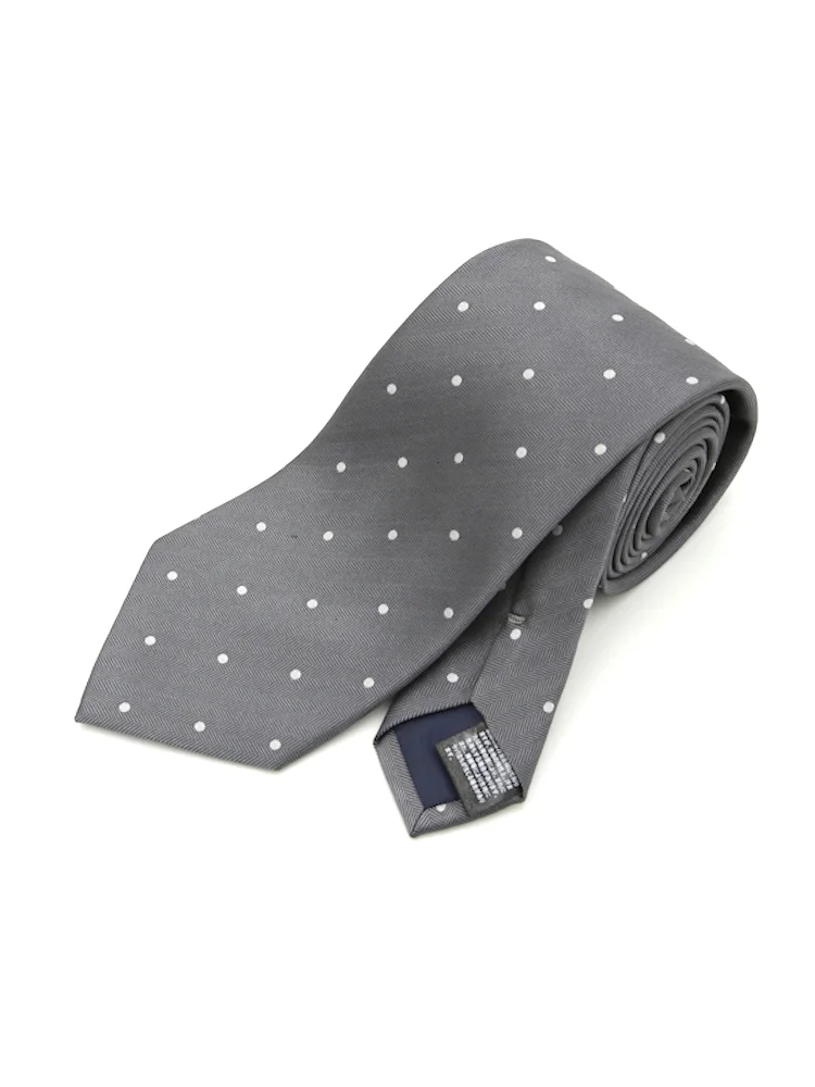 【シルク100%】ネクタイ レギュラー ドット nero【フレッシャーズにもおすすめ】(C.グレー)
