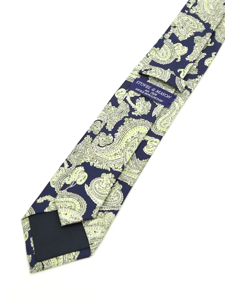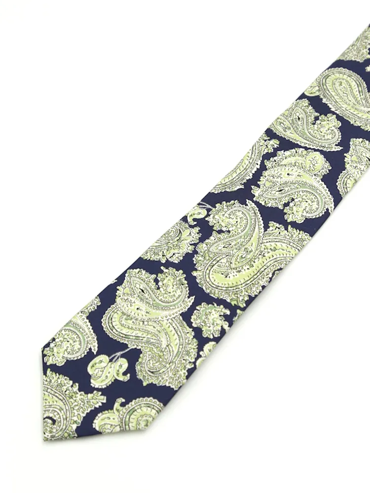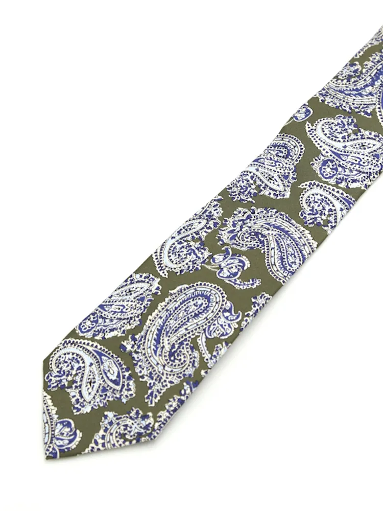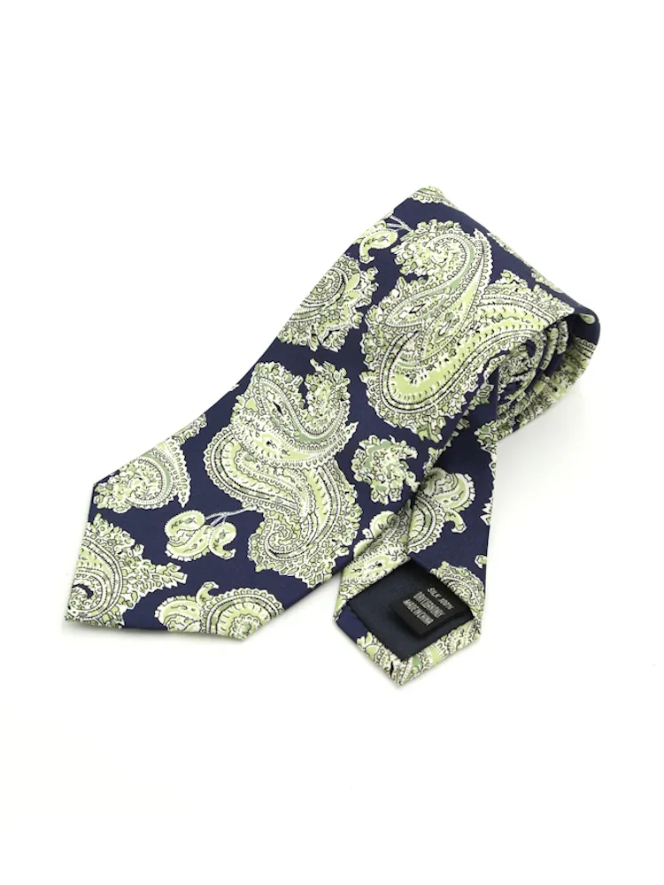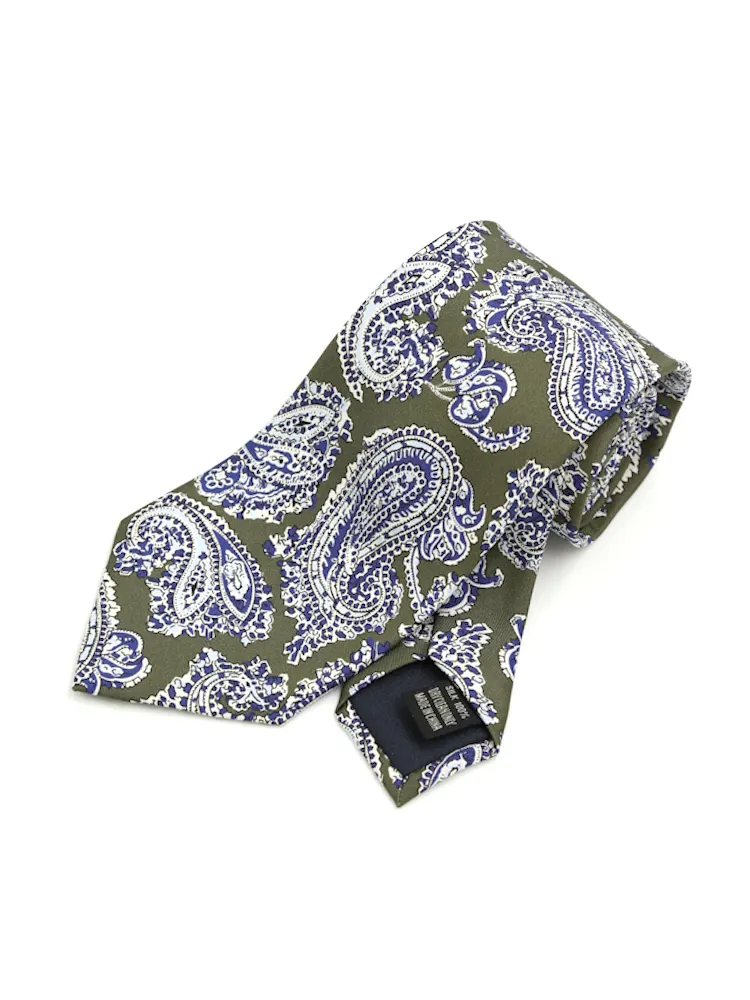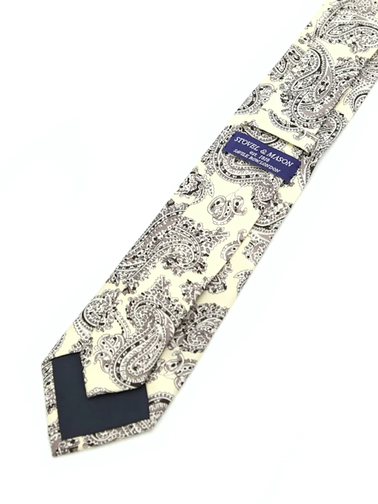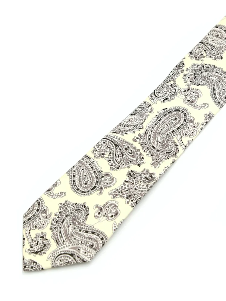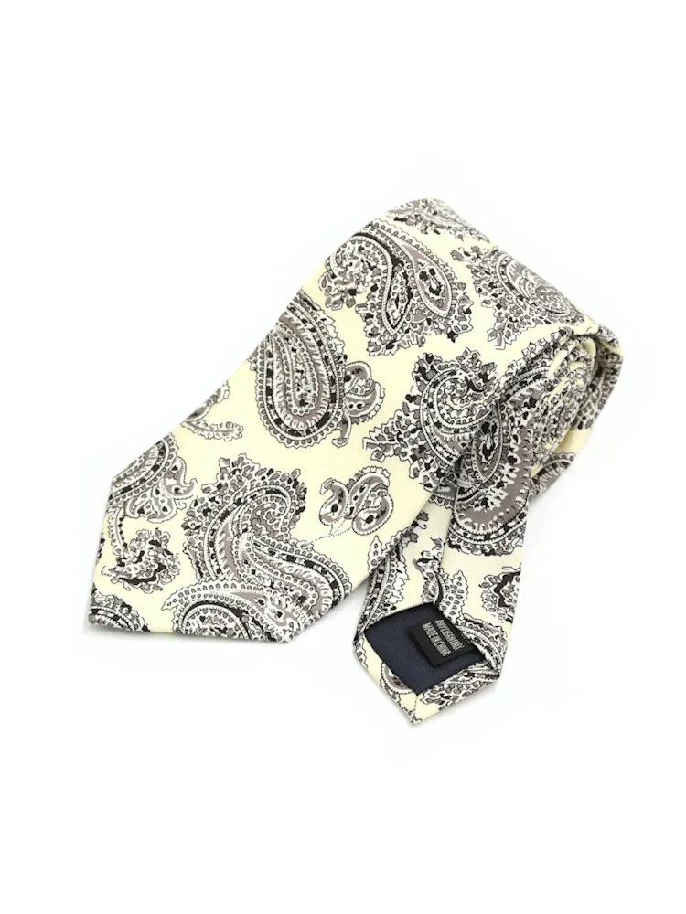 【シルク100%】ネクタイ レギュラー プリントタイ ペイズリー S&M BLUE LABEL(オフホワイト)