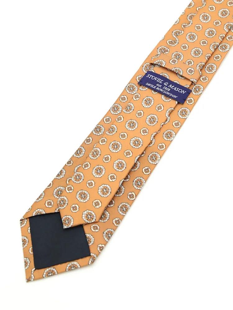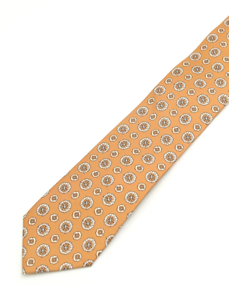 【シルク100%】ネクタイ レギュラー プリントタイ 小柄 S&M BLUE LABEL(オレンジ)
