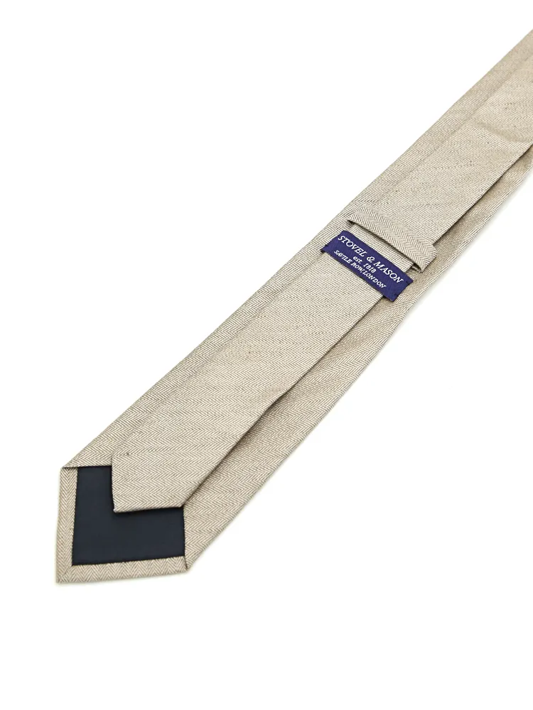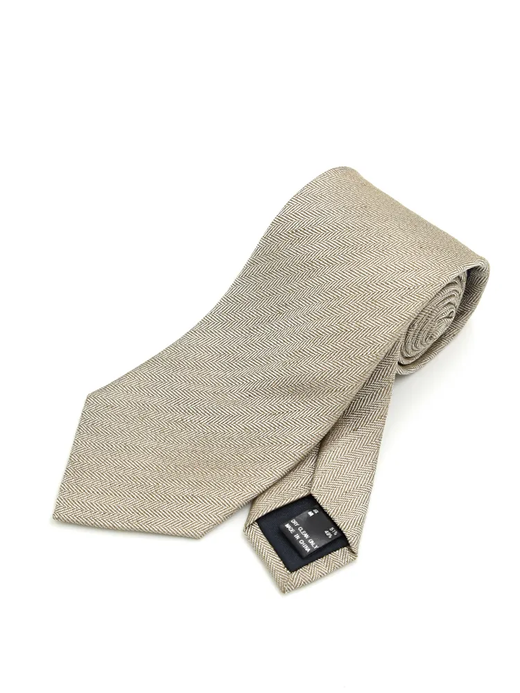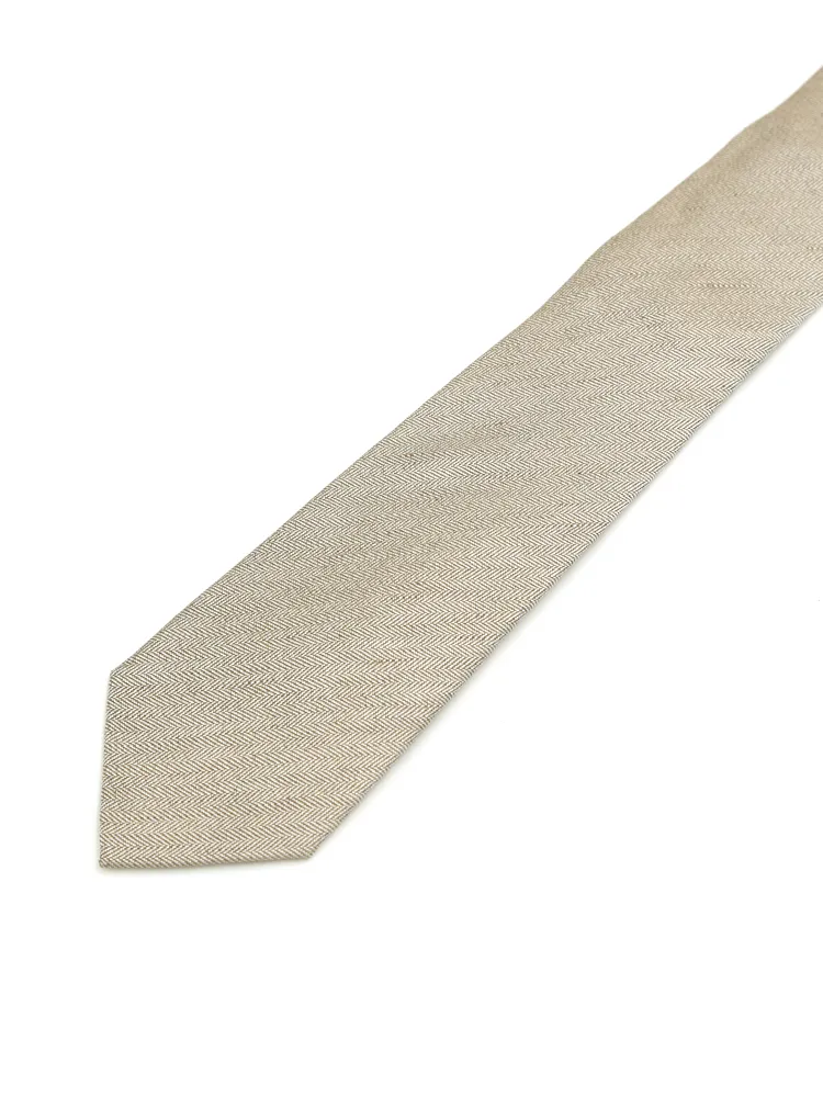 【シルクリネン】ネクタイ レギュラー ヘリンボン S&M BLUE LABEL 春夏(ベージュ)