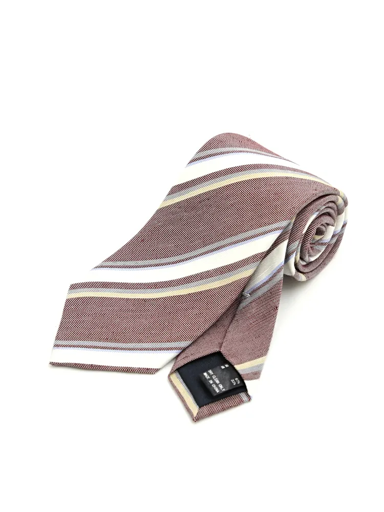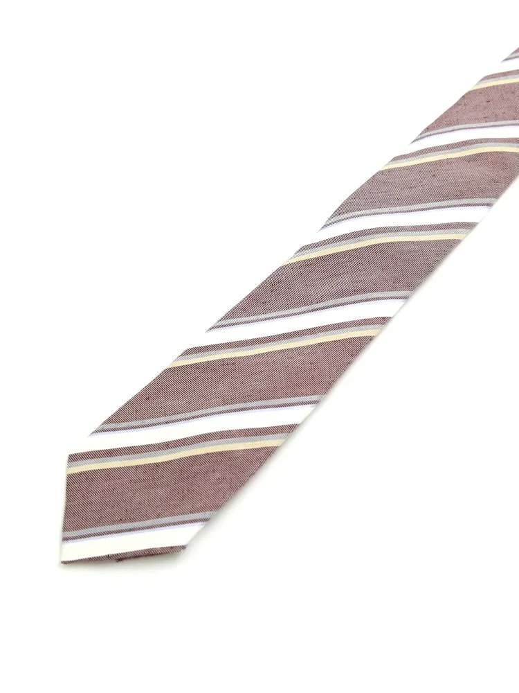 【シルクリネン】ネクタイ レギュラー ストライプ S&M BLUE LABEL 春夏(ワイン)