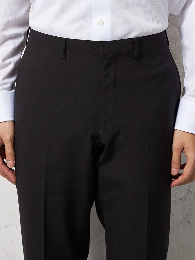 【ウォッシャブル】パンツスラックスノータック防しわリッケンバッカーブラック