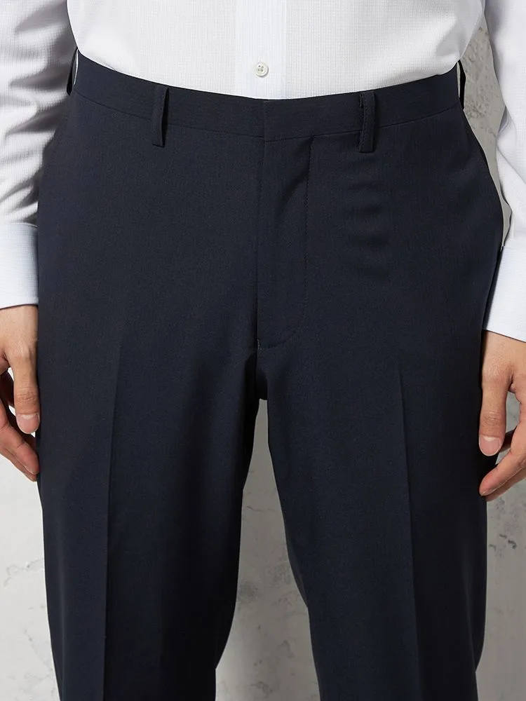 【ストレッチ】パンツ スラックス ノータック ドライパンツ ウォッシャブル nero【スリムデザイン】(ネイビー)