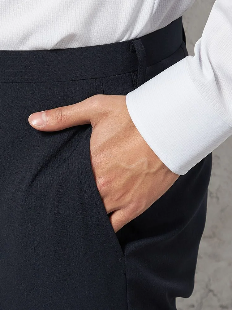 タテ・ヨコに伸びる4WAYストレッチ素材により、動きの多いビジネスマンにフィットする一本です。