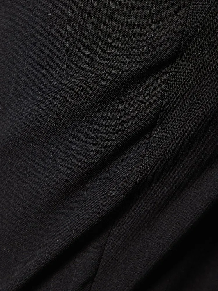 陰影で表したシャドウストライプがエレガントな、ノータック仕上げのスラックス。