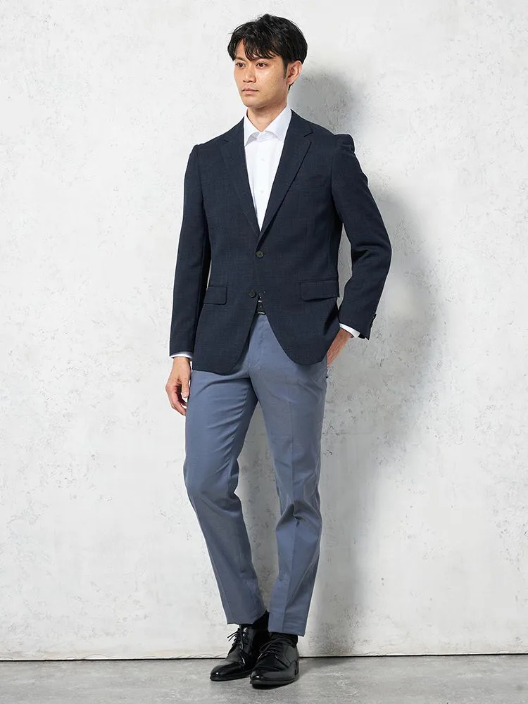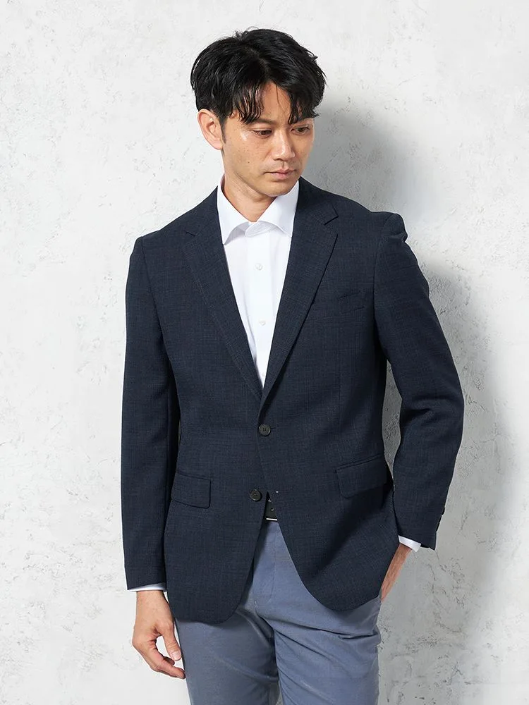 切り込みが1本のセンターベントデザインです。細身でスッキリとしたシルエットが特徴で、快適な着心地を提供します