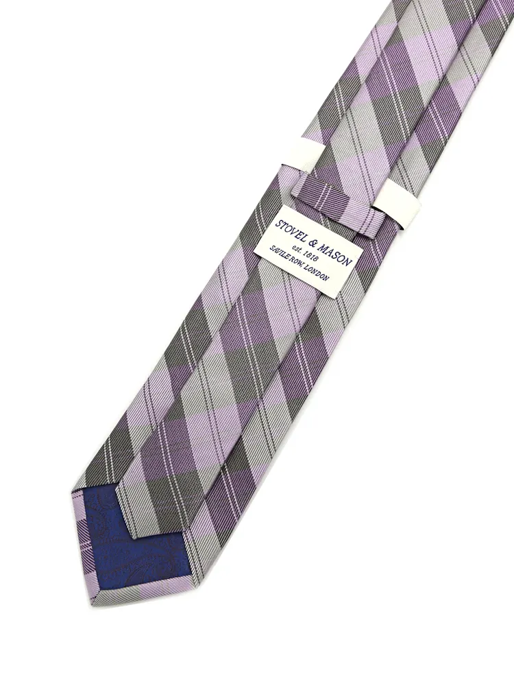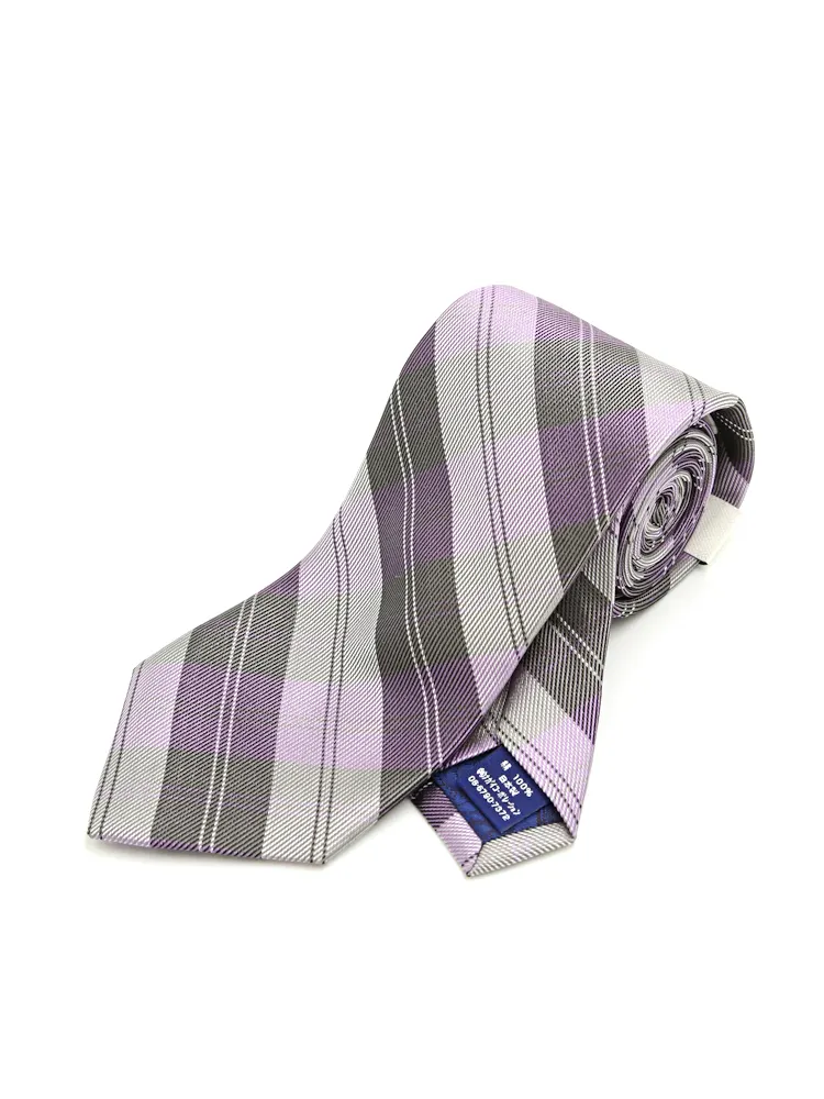 【シルク100%】ネクタイ レギュラー 日本縫製 チェック S&M(M.グレー)