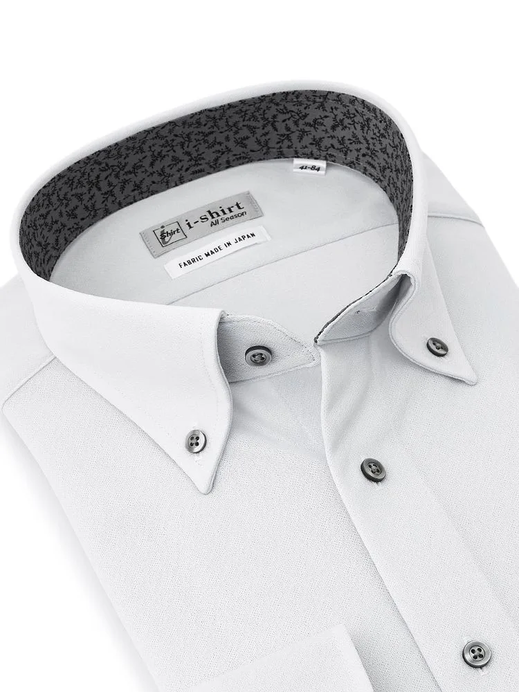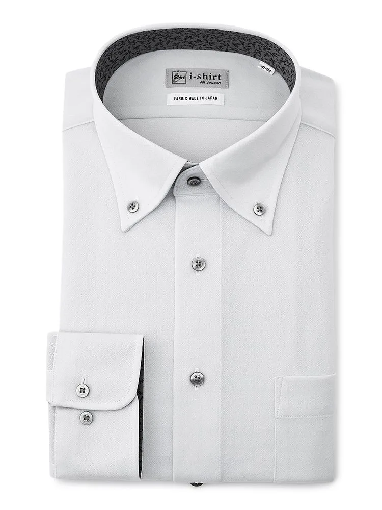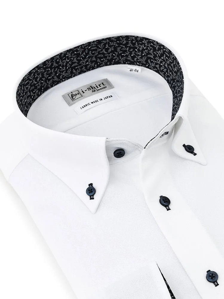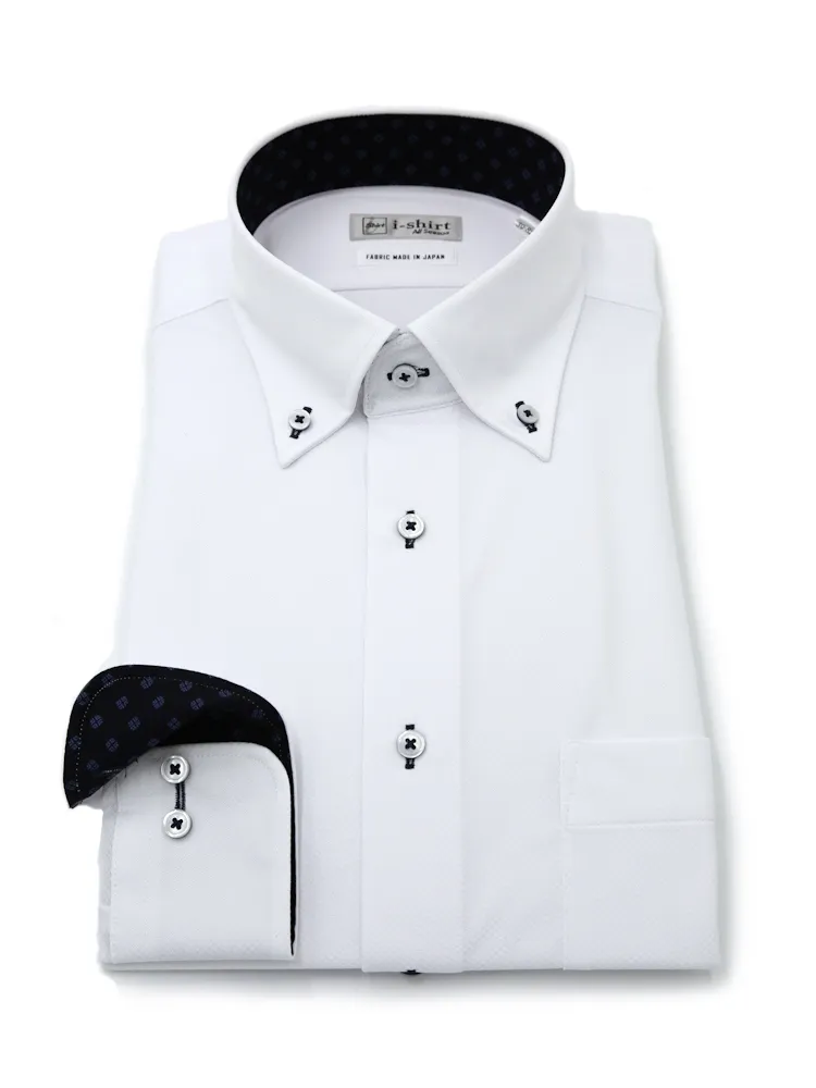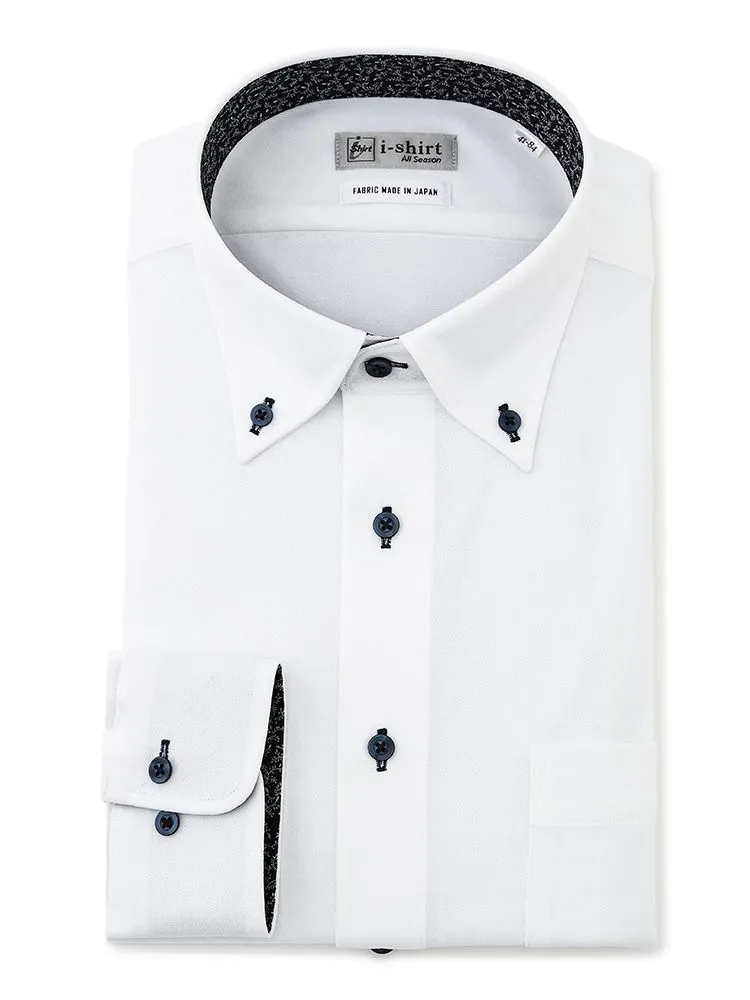【形態安定】アイシャツ 長袖ワイシャツ ボタンダウン 織柄無地 i-shirt 通年(ホワイト)
