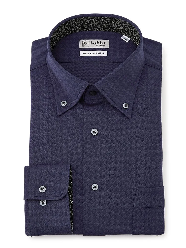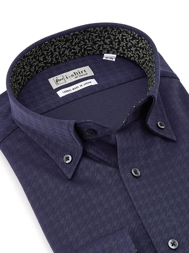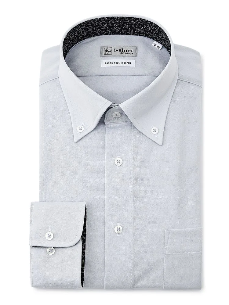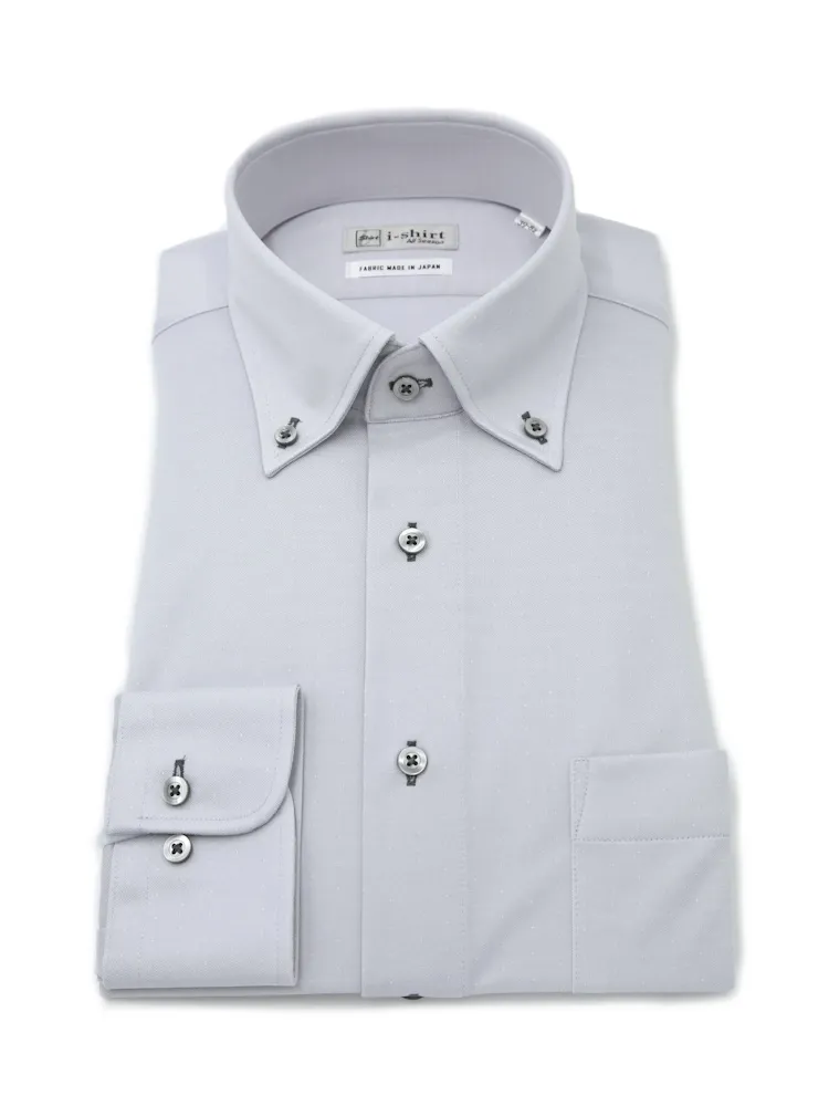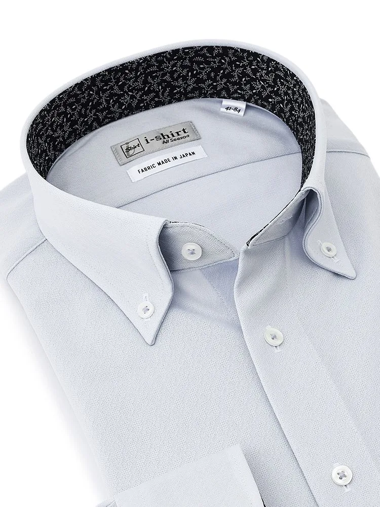 【形態安定】アイシャツ 長袖ワイシャツ ボタンダウン 織柄無地 i-shirt 通年(ホワイト)