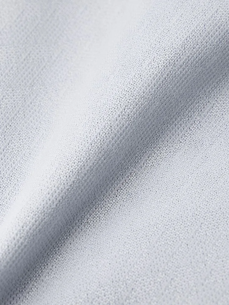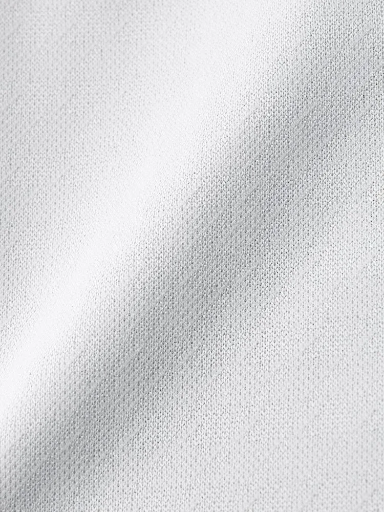 こだわりの日本製生地はソフトなポリエステルニットで、スポーツウェア等にも使われる高機能素材。体の動きに合わせて生地が伸び縮みする高いストレッチ性が特徴で、動作時の負荷が少なく着用ストレスも軽減します。