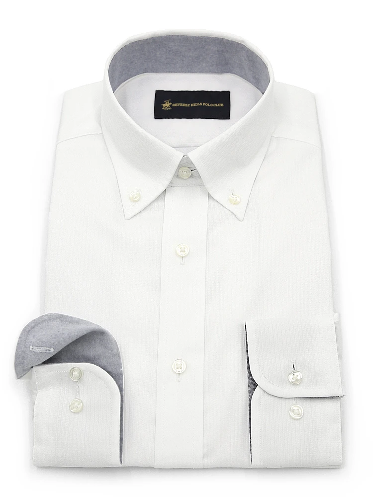 • ホワイト 【形態安定】アイシャツ 長袖ワイシャツ ボタンダウン 織柄無地 i-shirt 通年 | はるやま公式通販