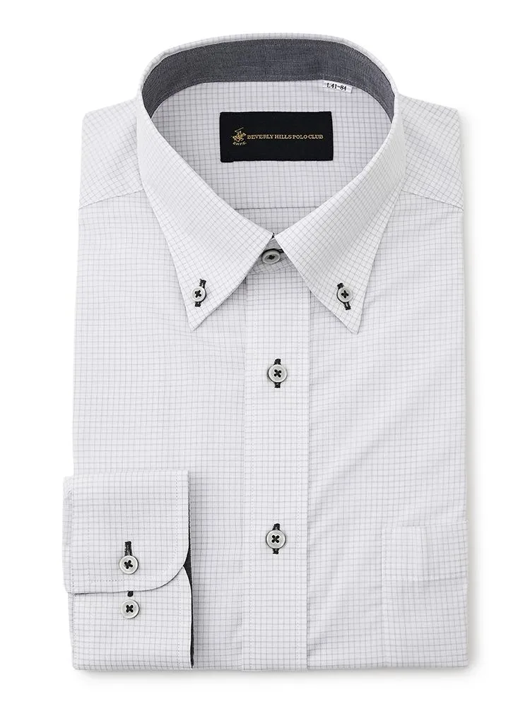 【形態安定】 BHPC CVC 長袖ワイシャツ ボタンダウン チェック ビバリーヒルズポロクラブ 通年