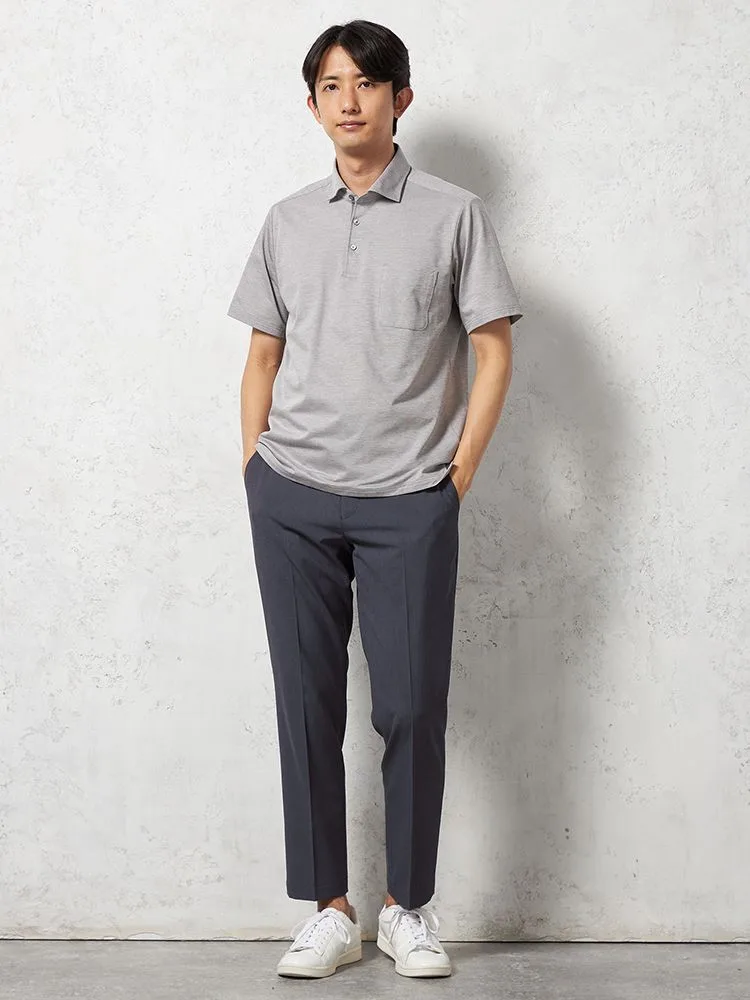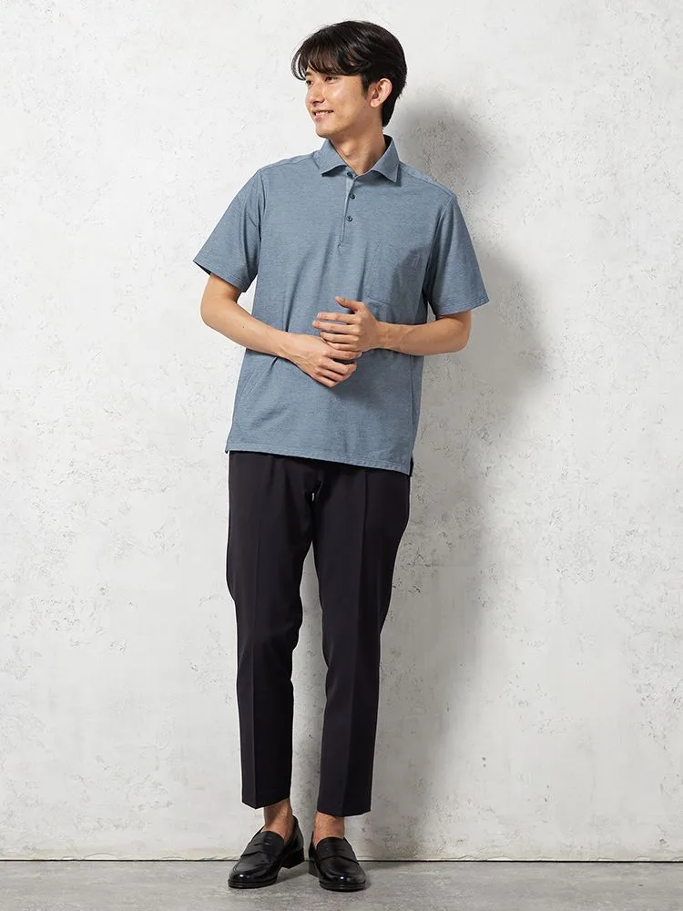 汎用性が高く着まわしのきく、無地の半袖ポロシャツです。