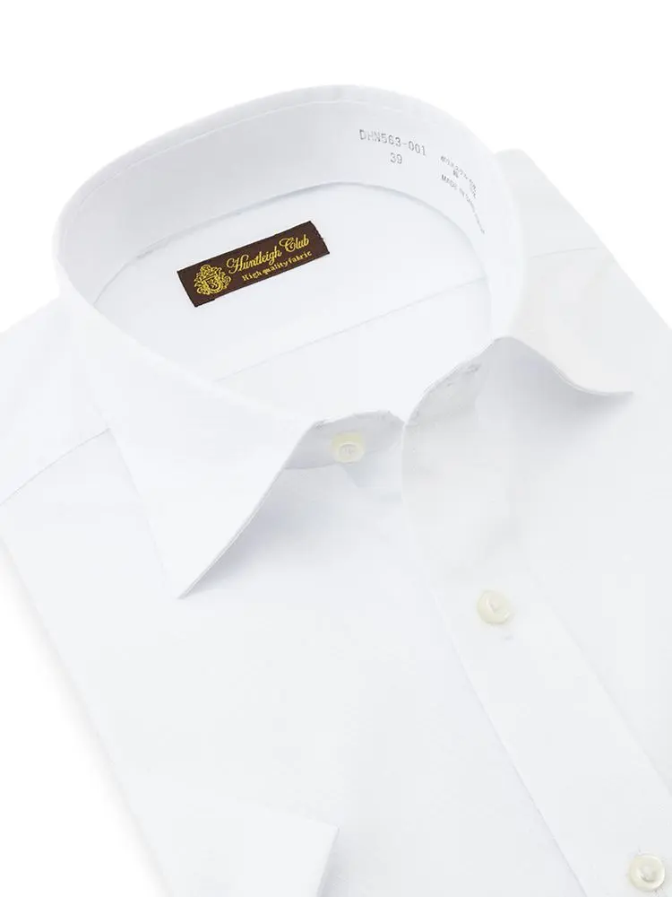 【形態安定】半袖ワイシャツボタンダウン白ドビー織柄無地ハントレークラブ春夏