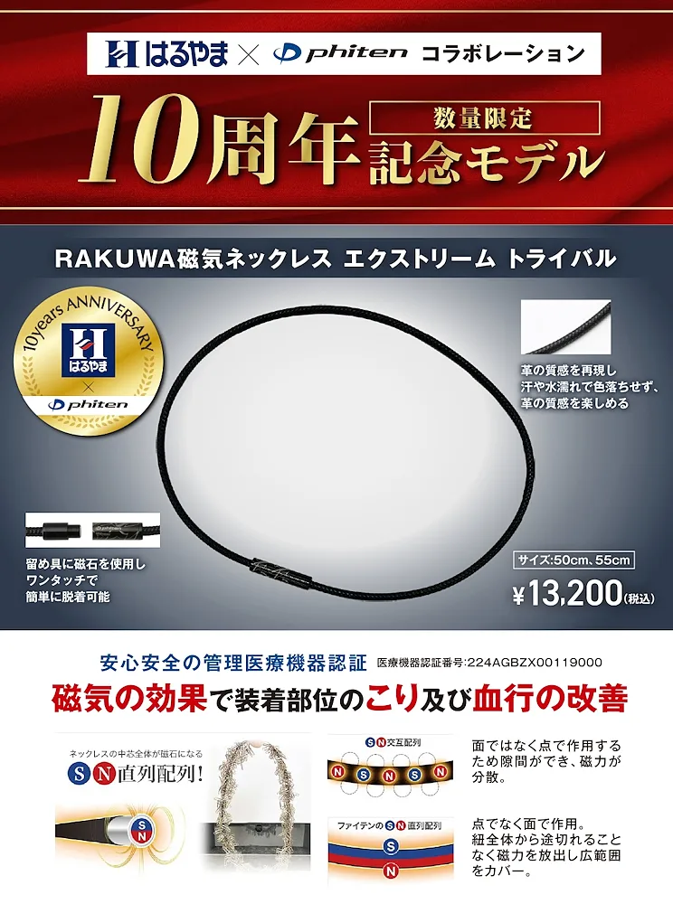 はるやま×phitenコラボレーション 10周年記念モデル RAKUWA 磁気ネックレス【55cm】