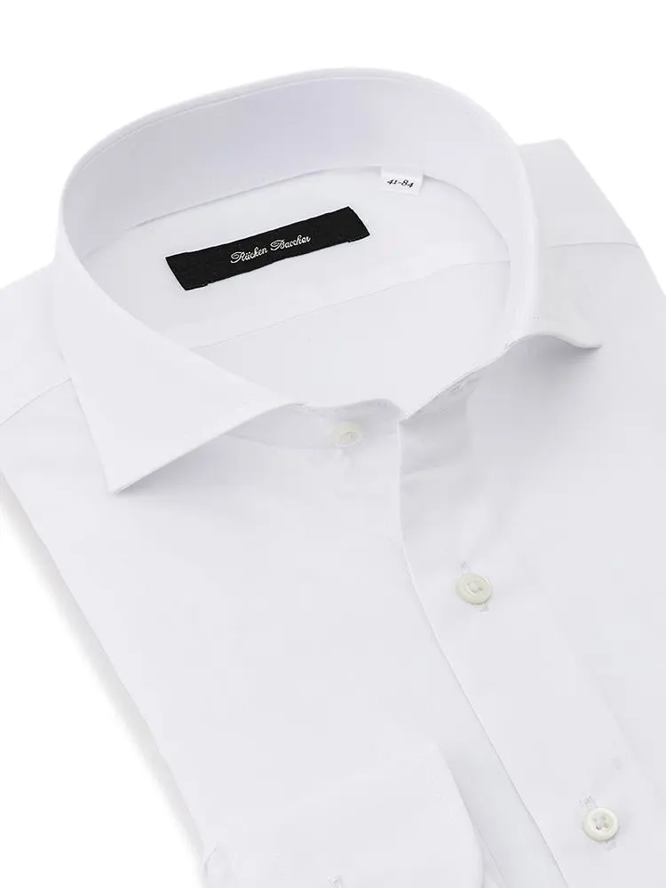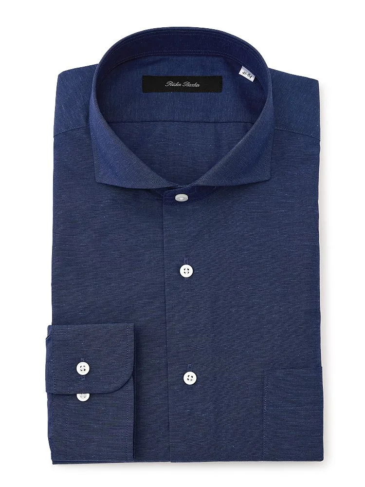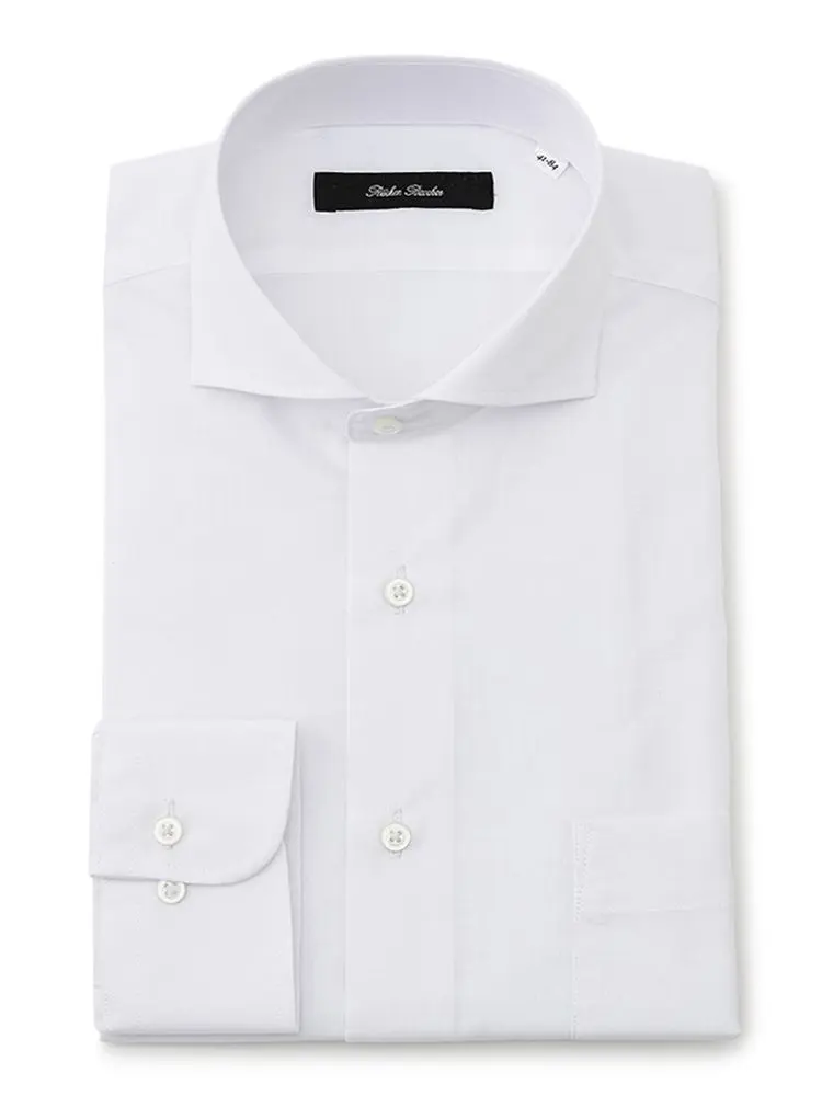 衿型はネクタイ着用時はもちろん、オフィスカジュアルでノーネクタイでもすっきり決まる「カッタウェイ」を採用。