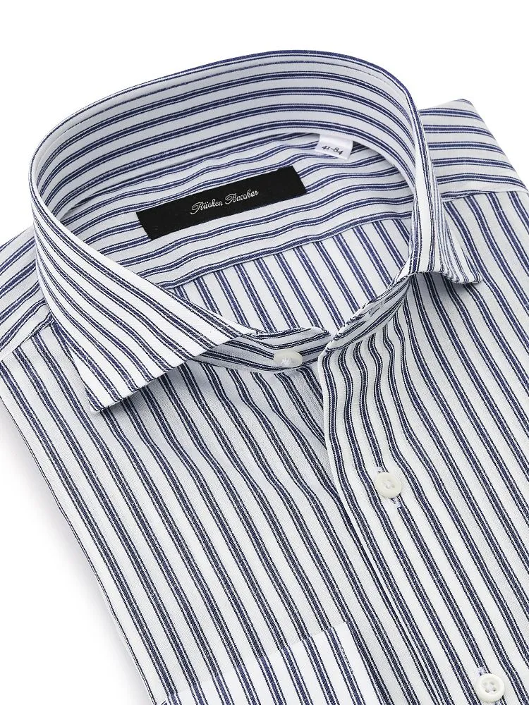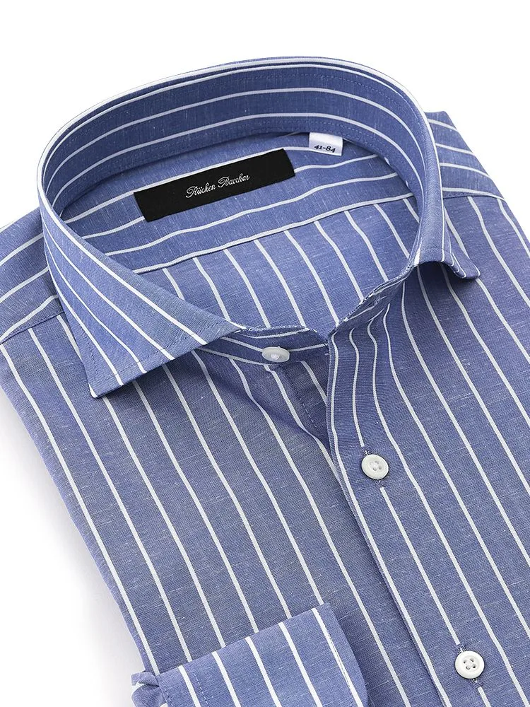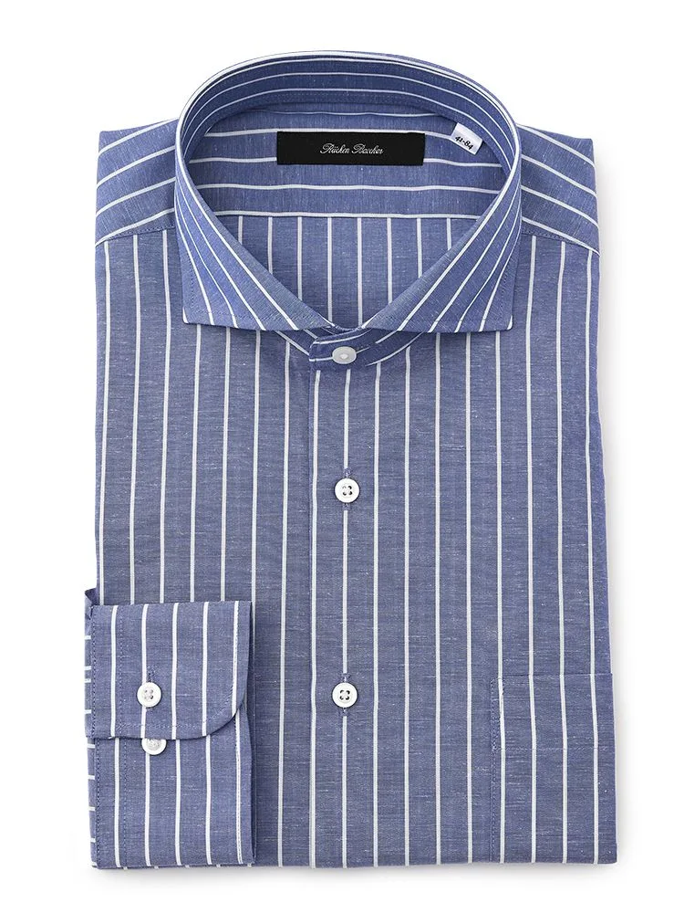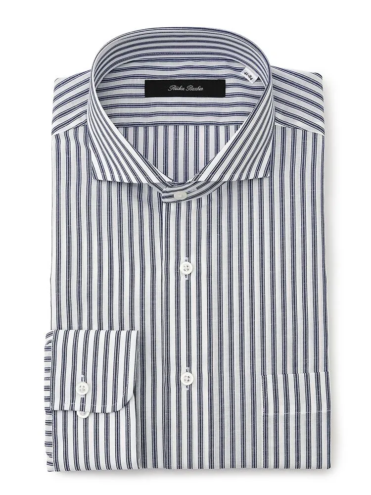 【プレミアムコットンニット】長袖ワイシャツカッタウェイ綿100%ストライプS&MBLUELABEL通年