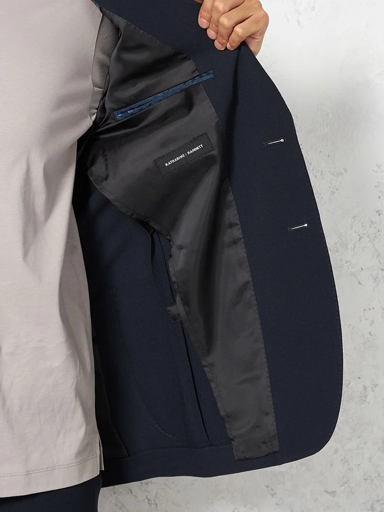 【KATHARINE E HAMNETT-キャサリン・イー・ハムネット-】メッシュ調 紺ブレザーメタルボタン【セットアップ商品有】軽量 イージーケア ネイビー 無地 春夏