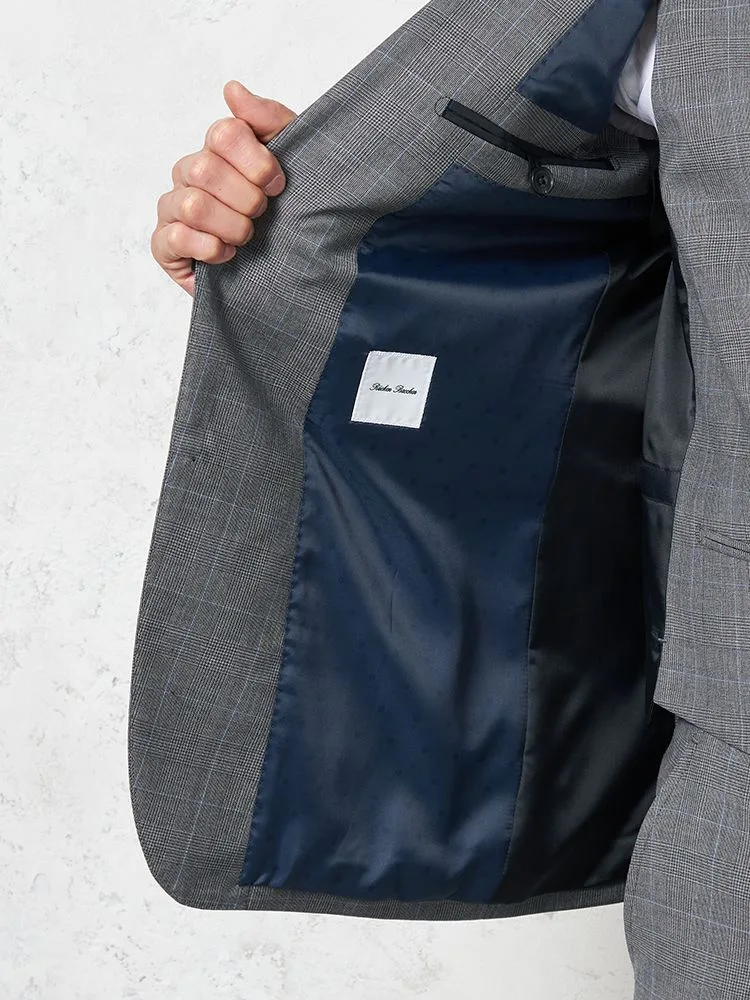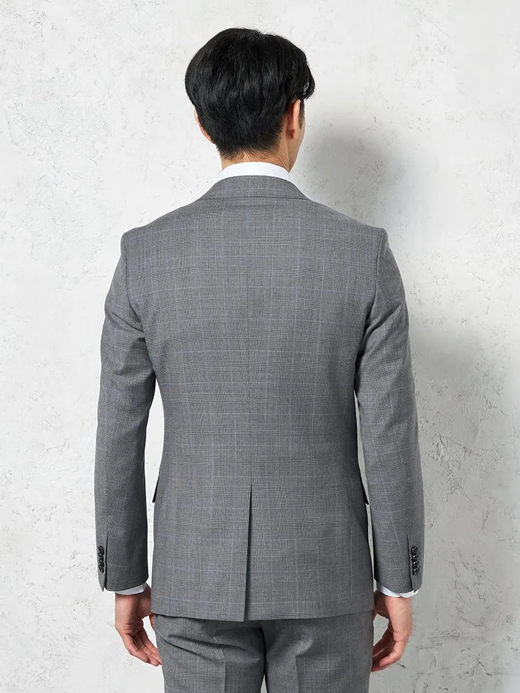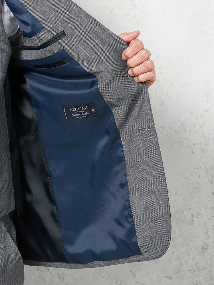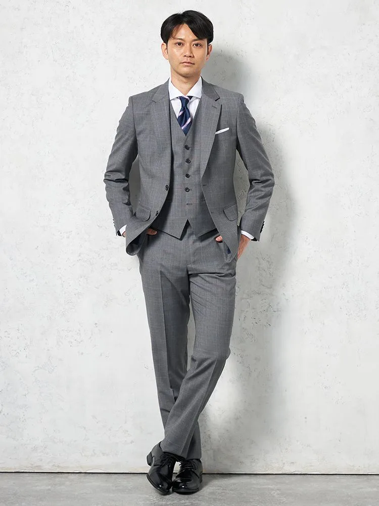 【ウール100%】スリーピーススーツ 2つボタン 【REDA社製生地】 チェック リッケンバッカー(M.グレー)