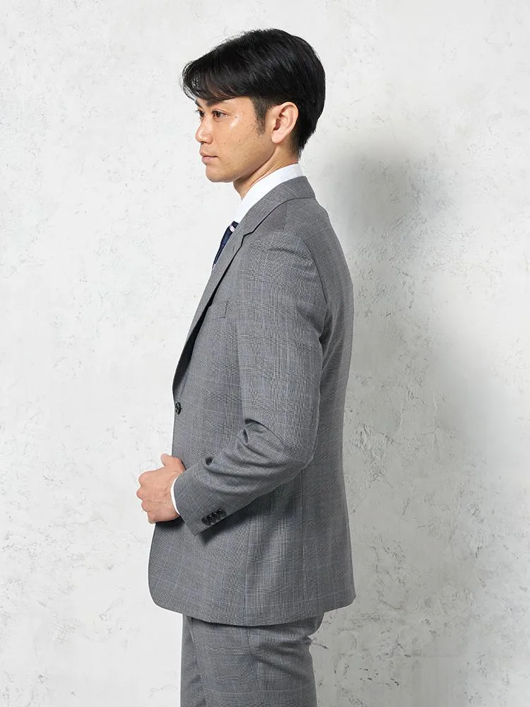 切り込みが1本のセンターベントデザインです。細身でスッキリとしたシルエットが特徴で、快適な着心地を提供します