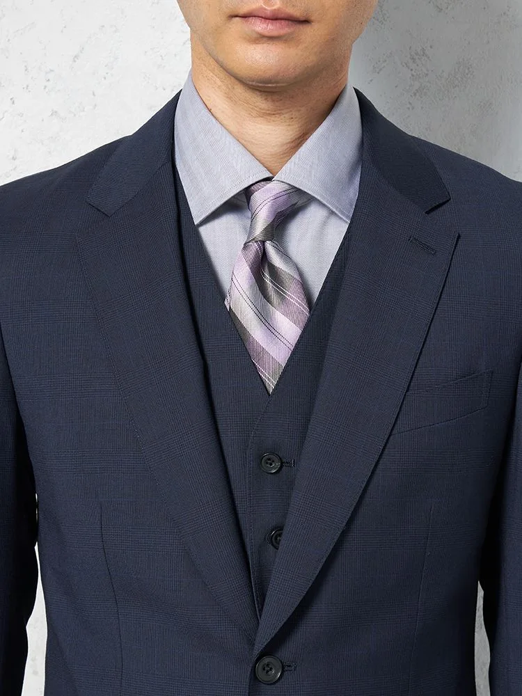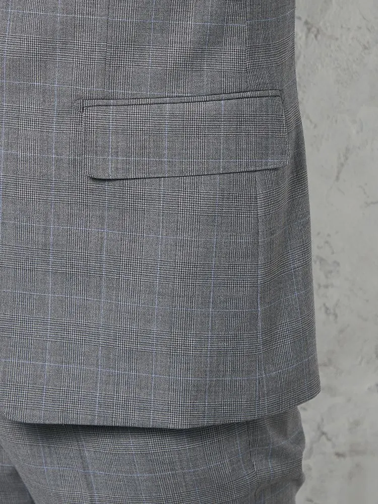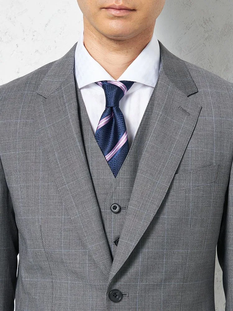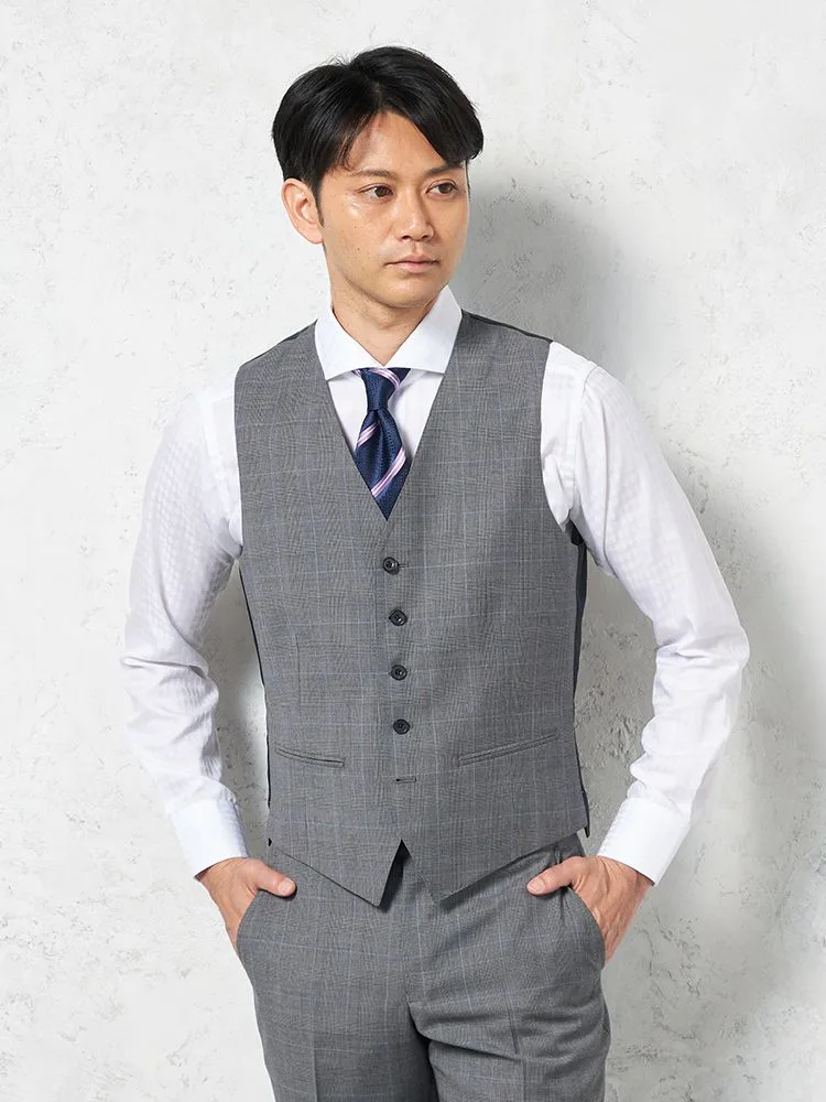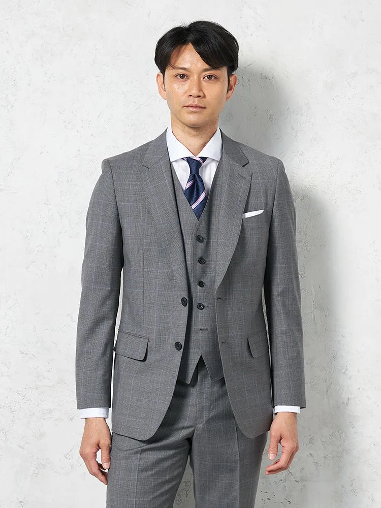 クラシカルな雰囲気あふれるグレンチェック柄のスリーピーススーツ。