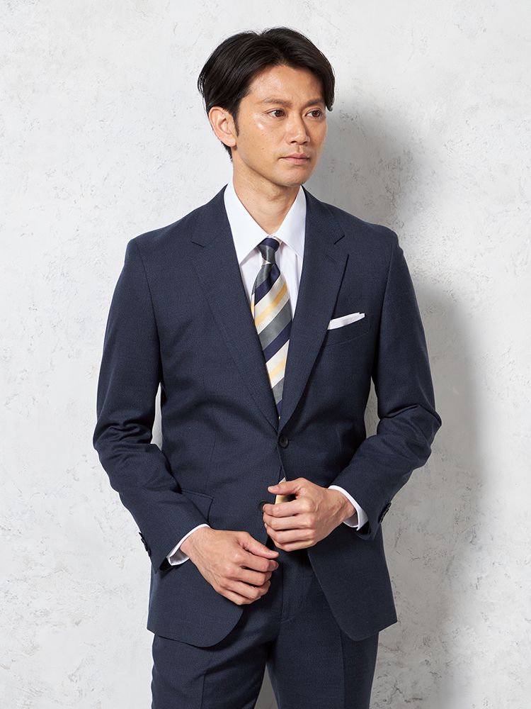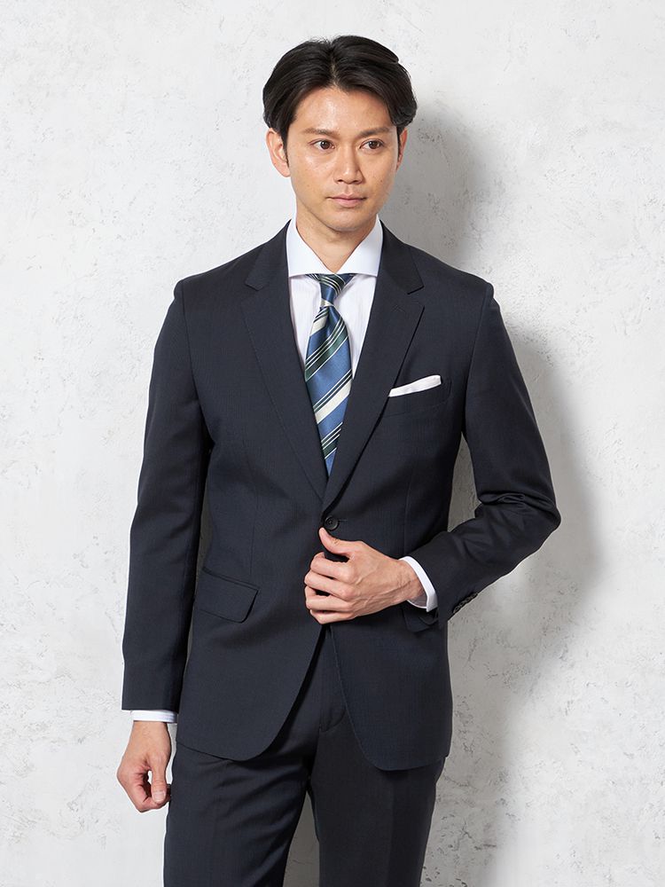 【即納】【WEB限定】スーツ2つボタンネイビーシャドウストライプ上下ウォッシャブル3シーズン対応