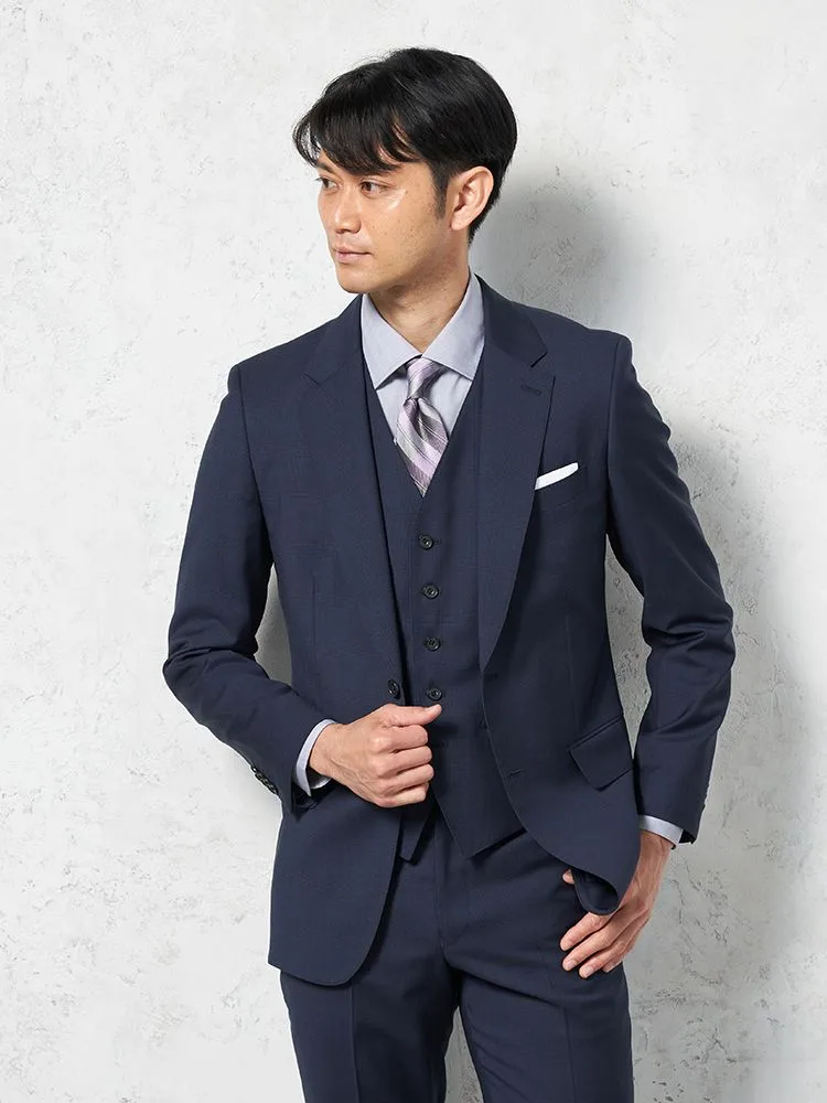 【ウール100%】スリーピーススーツ2つボタン【REDA社製生地】ピンヘッドリッケンバッカー