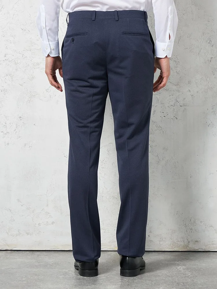 パンツの腰回りに生地の折り込みがなく、スッキリとしたシルエットを実現します。シンプルで洗練された印象を与え、すっきりとした着こなしが可能です。