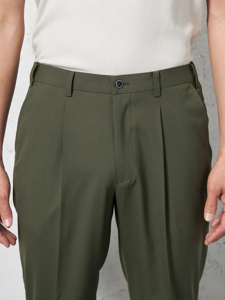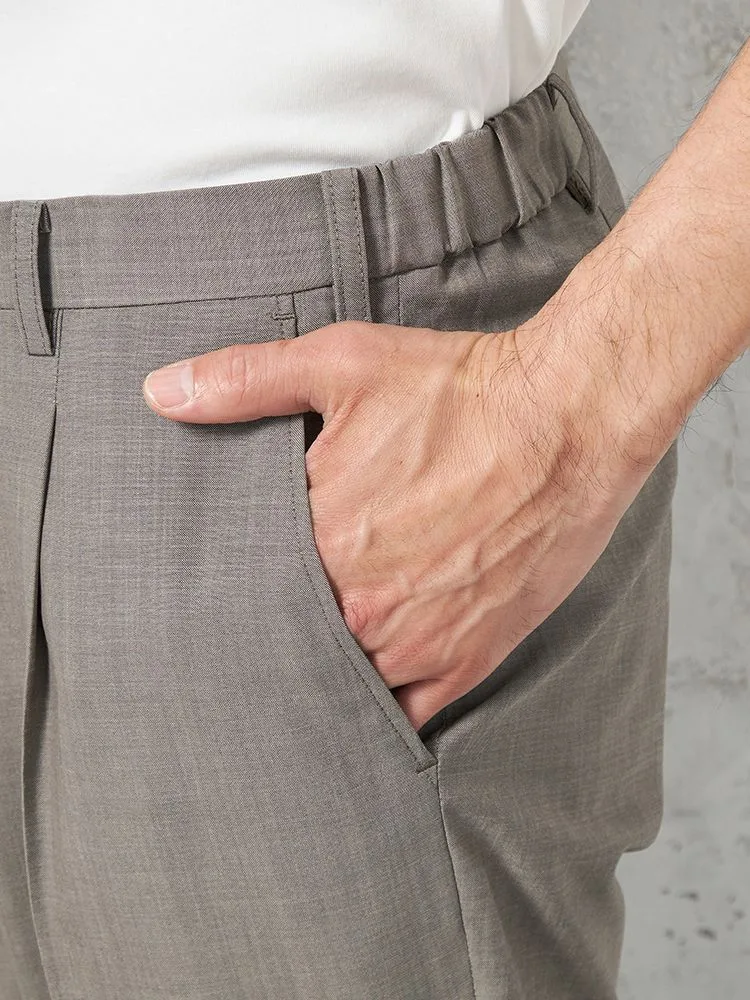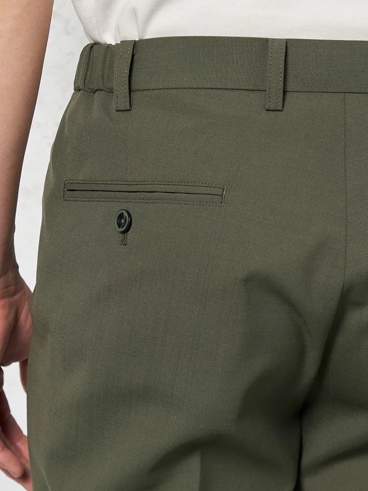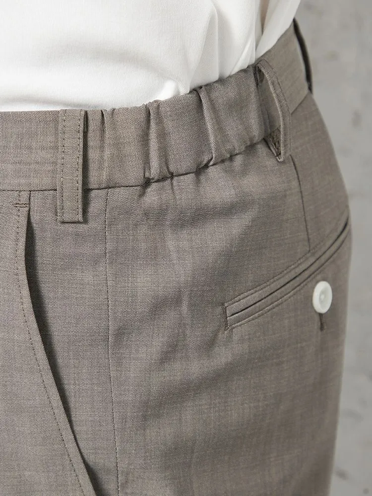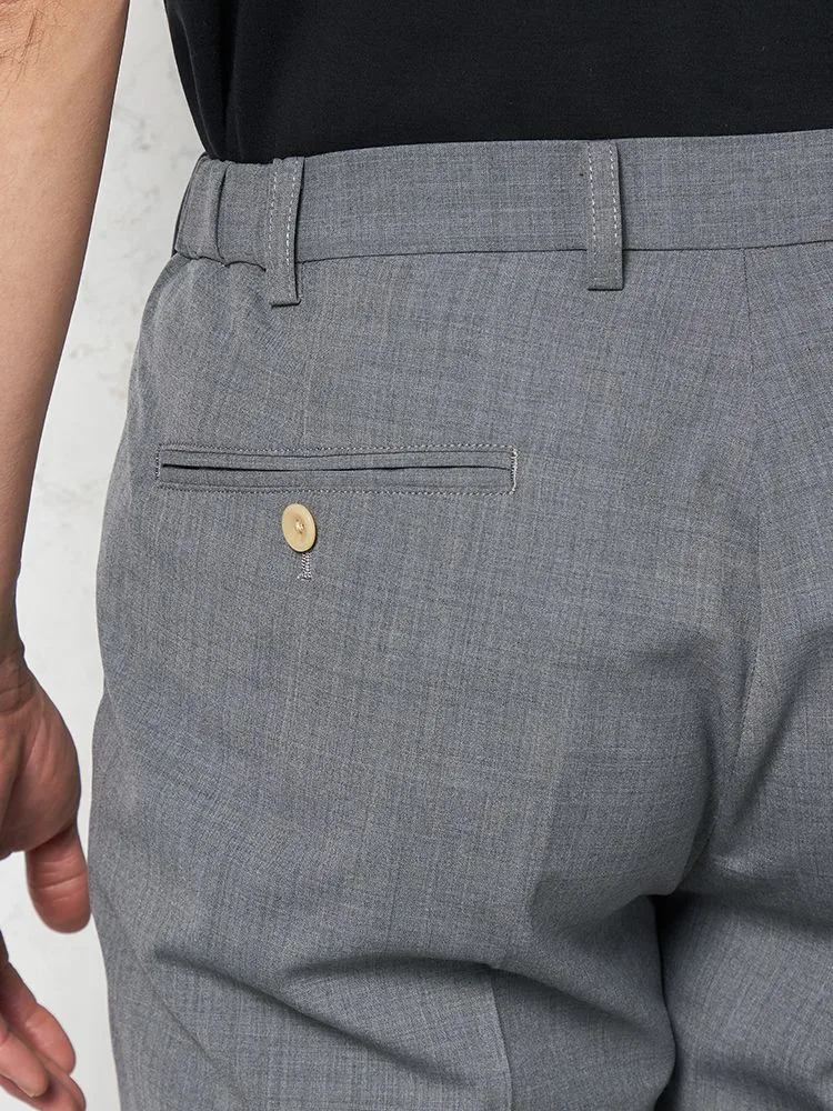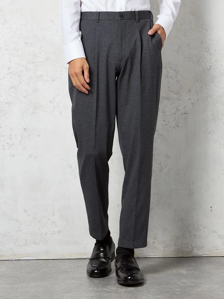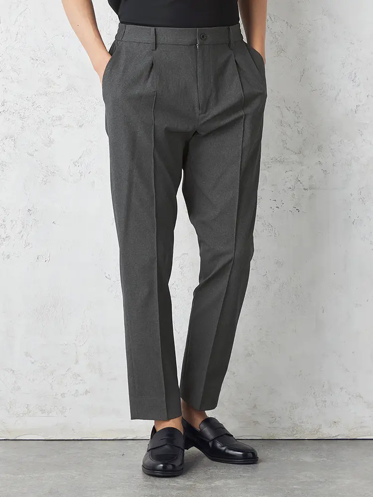 腰まわりにワンタック、フロントにシャープなセンタープレスを配しています。