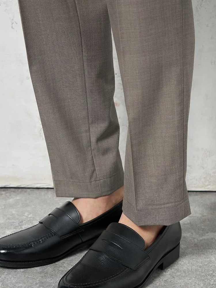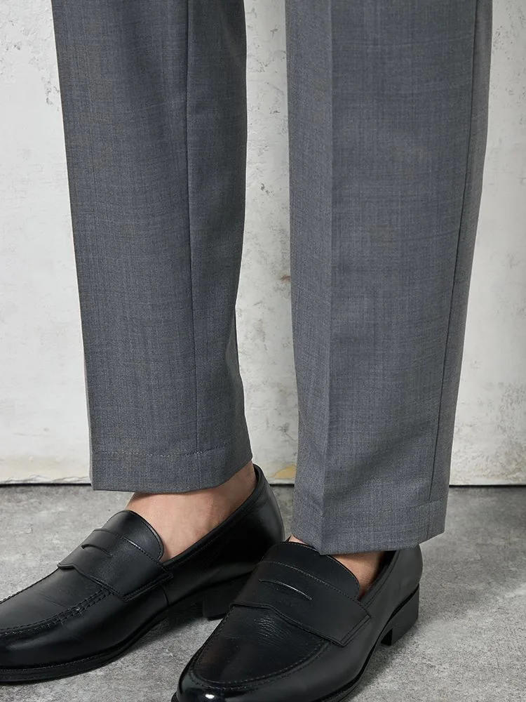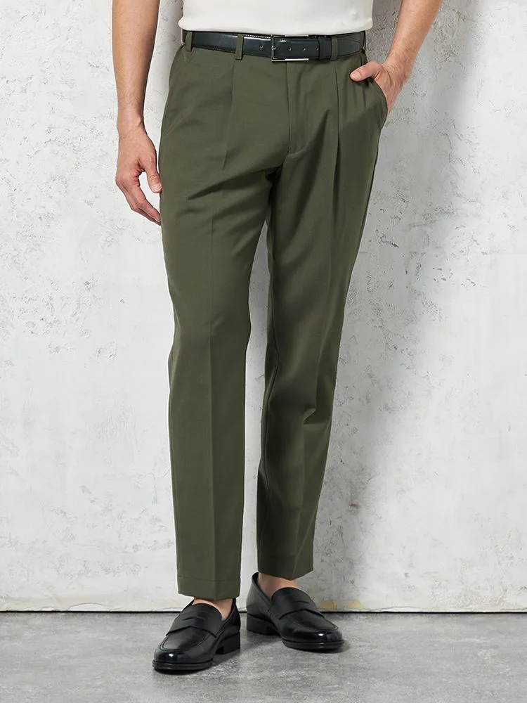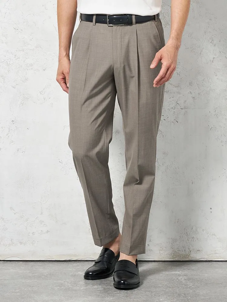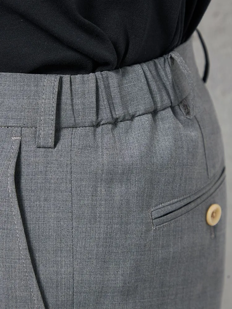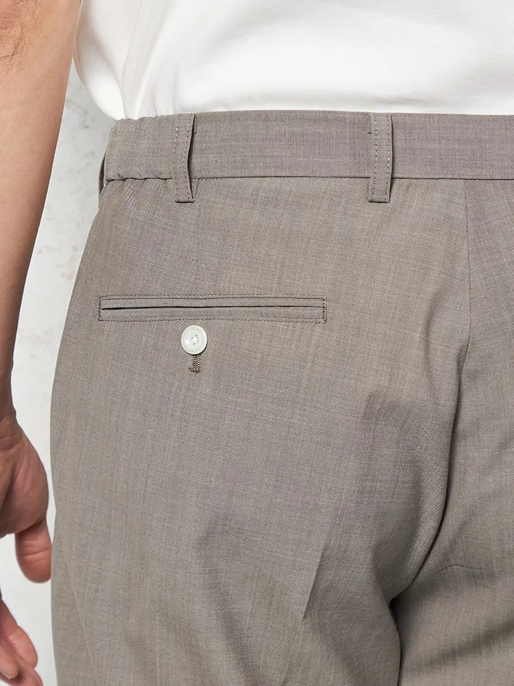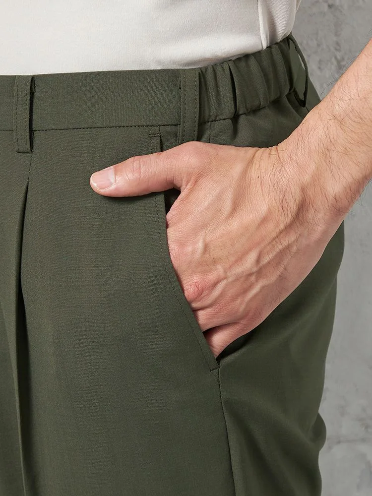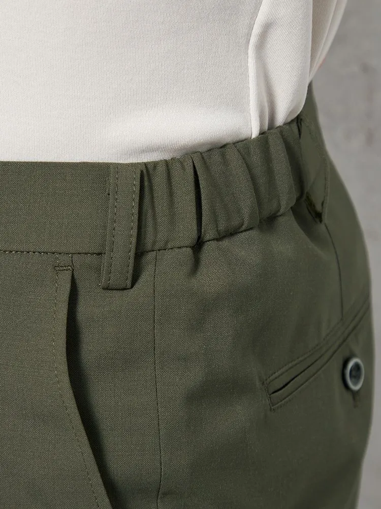 腰まわりにワンタック、フロントにシャープなセンタープレスを配しています。