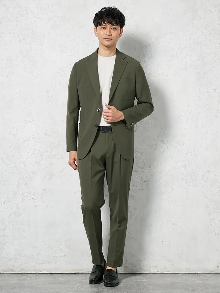 ビジネスにも休日にも活躍し、同生地のジャケットを合わせるとセットアップスーツとしても楽しめます。