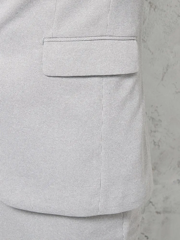 明るいカラーと繊細なシャドーストライプ柄で、シルエットはスリムにデザインしています。