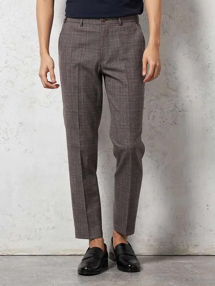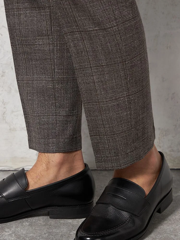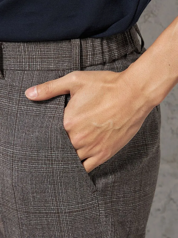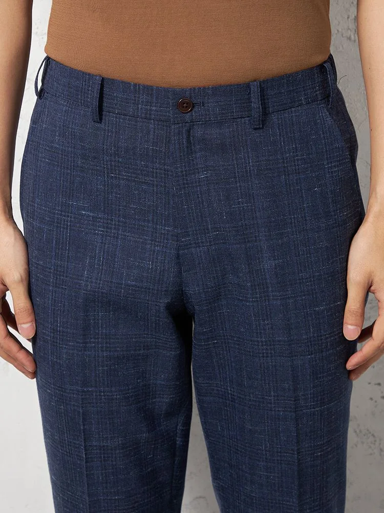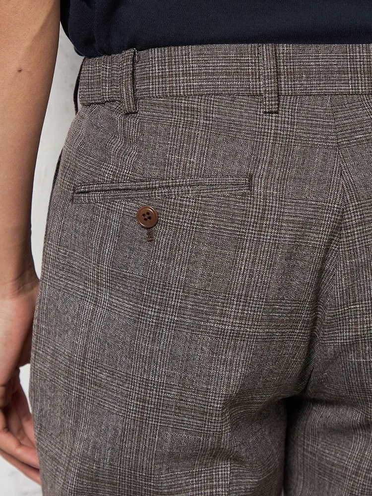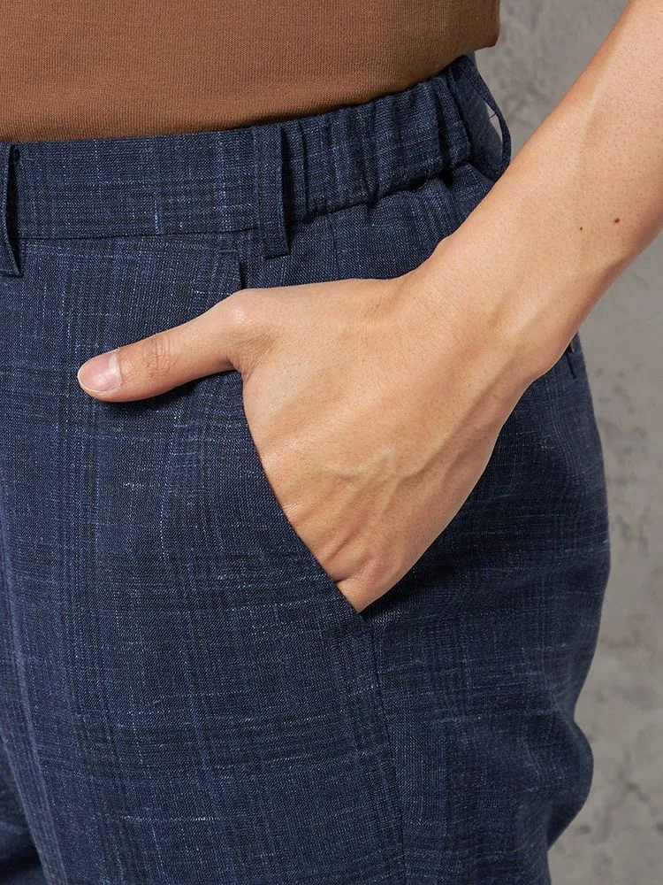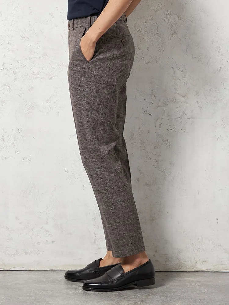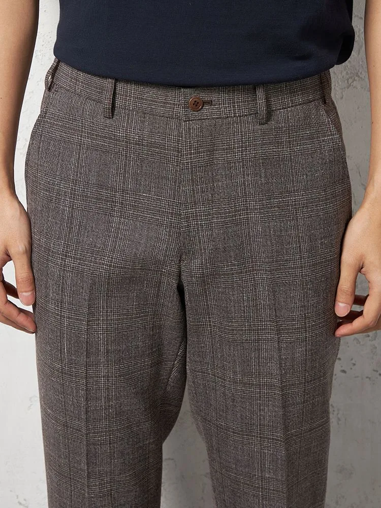 【軽量】パンツ ノータック 【セットアップ商品有】ストレッチ リネン混 無地 リッケンバッカー 春夏(D.ブラウン)