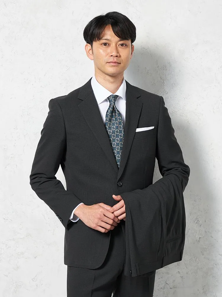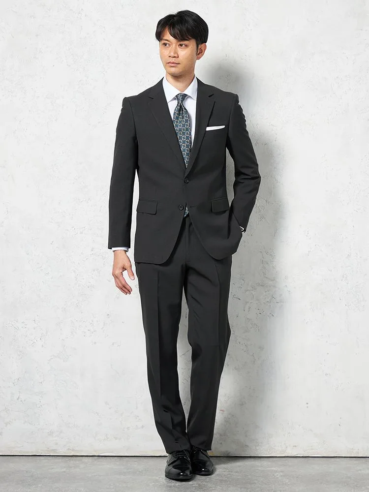 【即納】スーツ2つボタン【WEB限定】上下ウォッシャブルM.グレー小柄3シーズン対応