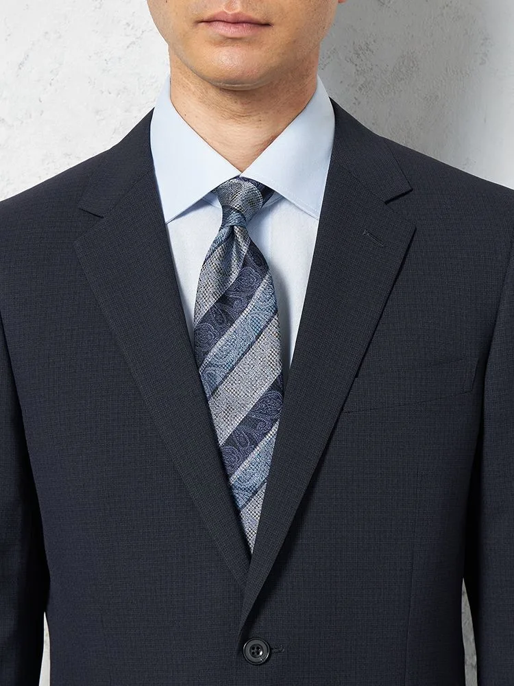 【上下ウォッシャブル】スーツ2つボタンツーパンツイージーケアネイビーマイクロチェックフュージョンクラブ