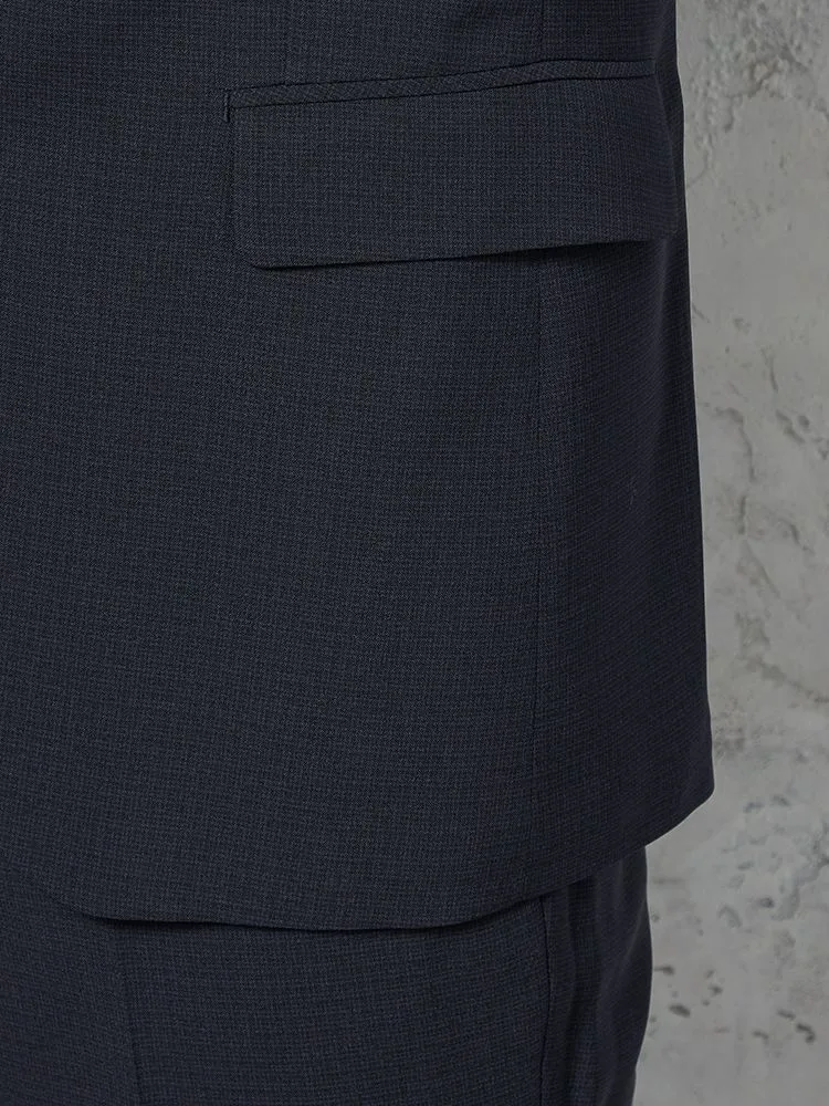 切り込みが1本のセンターベントデザインです。細身でスッキリとしたシルエットが特徴で、快適な着心地を提供します
